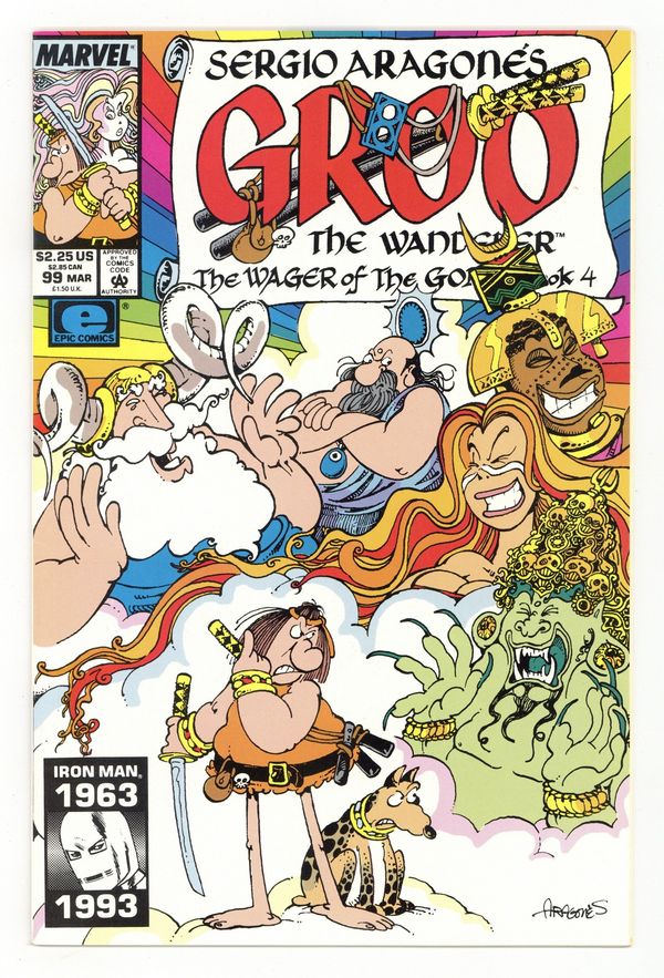 $20.00Comic featuring the humorous misadventures of the mighty (physically) but not-so-great (mentally) warrior named Groo. Cover art by Sergio Aragones. The Wager of the Gods: Book Four, script by Sergio Aragones (co-plot) and Mark Evanier (co-plot & dialogue), art by Sergio Aragones; Sage relates the grand finale of the wager of the gods. Li'l Groo one-page story by Aragones. Rufferto one-page story by Aragones. 36 pgs. $2.25. Cover price $2.25.
