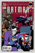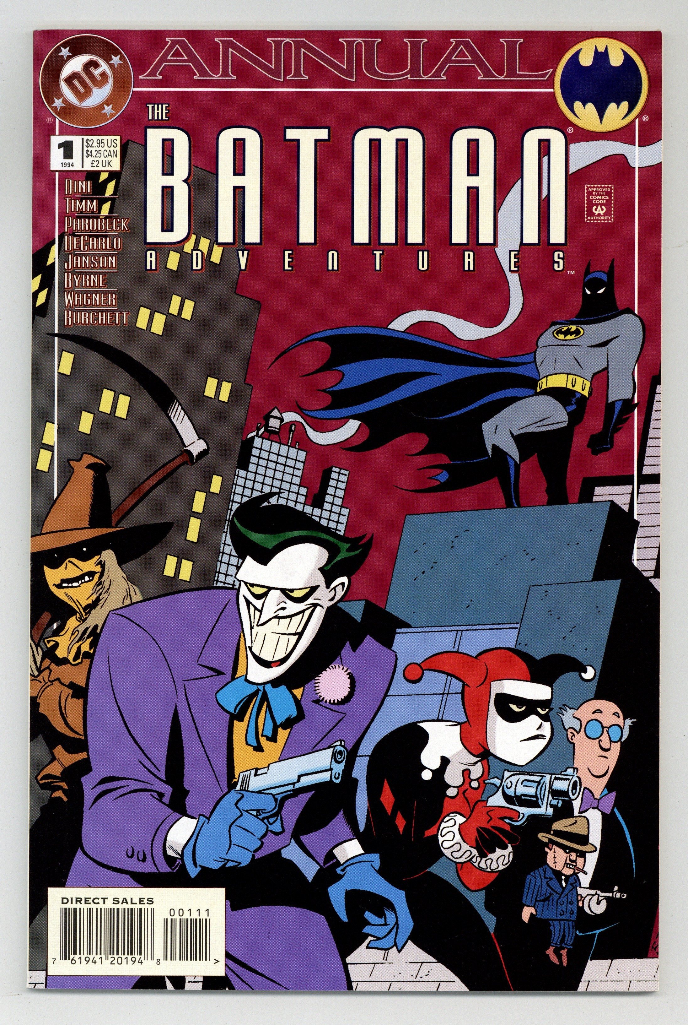 Direct Edition. Meet Roxy Rocket, a new villain facing Batman that forces him to recall times when some of his greatest foes including Harley Quinn, the Scarecrow and the Ventriloquist almost went straight. Written by Paul Dini, with art by Mike Parobeck, Bruce Timm, John Byrne, Klaus Janson, Dan DeCarlo, Matt Wagner and Rick Burchett. Cover by Timm. Cover price $2.95.