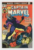 $11.00First appearance of Nitro in "Blown Away!" Script by Steve Englehart, plot and pencils by Jim Starlin (final full issue), inks by Jack Abel. Appearances by Carl Danvers and Rick Jones. Cameos by Moon Dragon, Drax the Destroyer, and Iron Man. PLUS, the events of this issue directly lead to the cancer that eventually takes Marvel's life in the classic "Death of Captain Marvel" Graphic Novel. The letters page contains Marvel Value Stamp series A # 25 (the [Human] Torch). Starlin cover. Cover price $0.25.