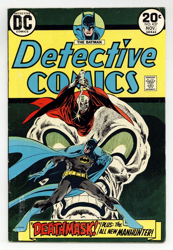 Cover by Jim Aparo. "Deathmask!", script by Archie Goodwin, art by Jim Aparo; An ancient mask of a South American god of death is worn by a succession of men driven by it to kill, and Batman must discover the reason why. Manhunter back-up stories begin with the acclaimed offering, "The Himalayan Incident," script by Archie Goodwin, art by Walter Simonson; Christine St. Clair, an Interpol agent, seeks a mysterious vigilante called Manhunter, aka Paul Kirk, a former big-game hunter; She learns from a man in Nepal of how Manhunter protected an idealistic anti-tyrant from assassination by a group of clones of Manhunter's, and then leaves, not knowing that the man she spoke to was Manhunter himself in disguise. 36 pgs., full color. $0.20. Cover price $0.20.