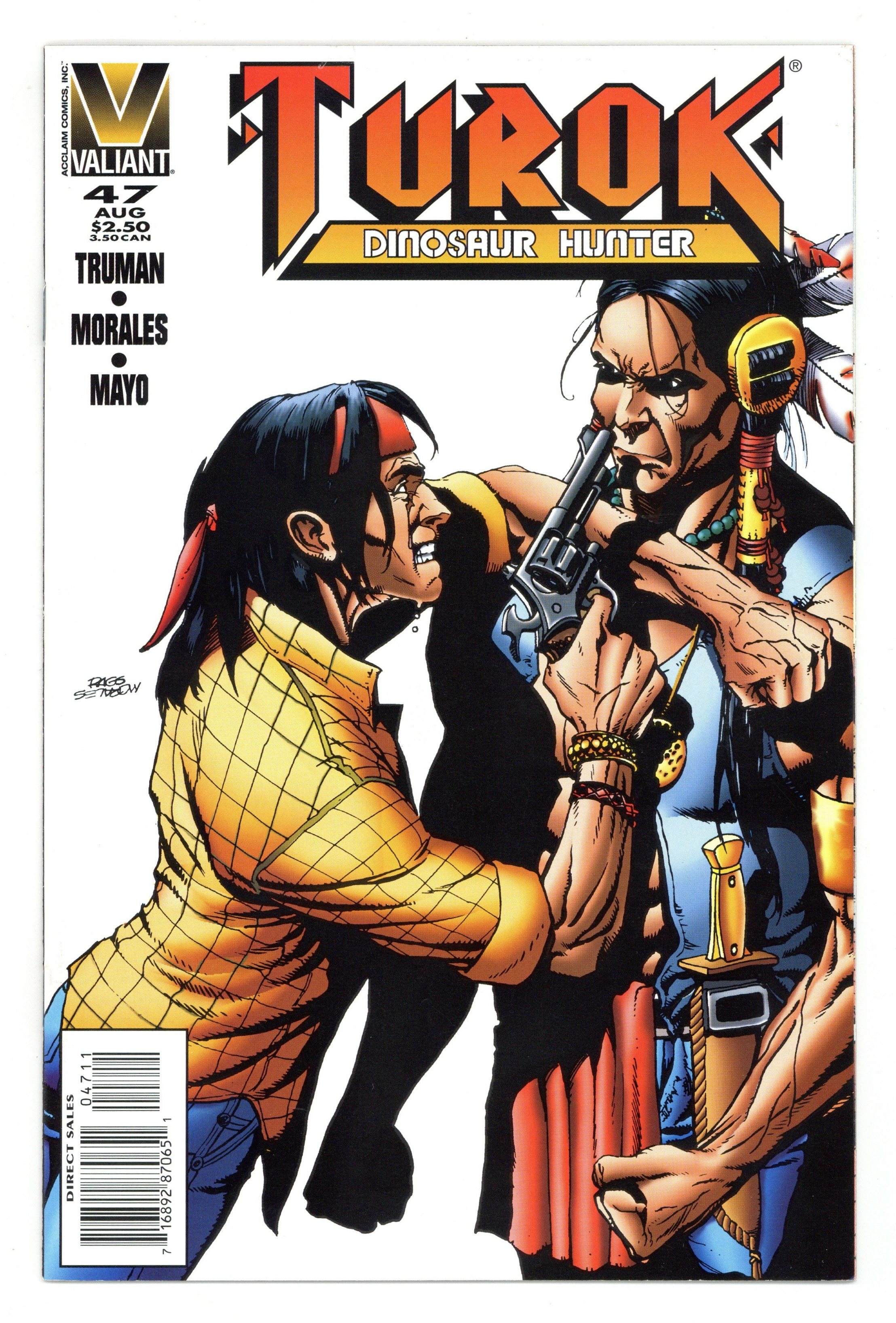 After the battle with the Lizard People in the Lost Land, Andy runs off on his own and Turok follows to find out what is going on in "Runaway." Script by Tim Truman and art by Rags Morales & Gonzalo Mayo. Issue also has "Resurrection Rise 2," a four-page preview to the video game with script by James Percham and art by Sean Chen & Randy Elliott Cover price $2.50.