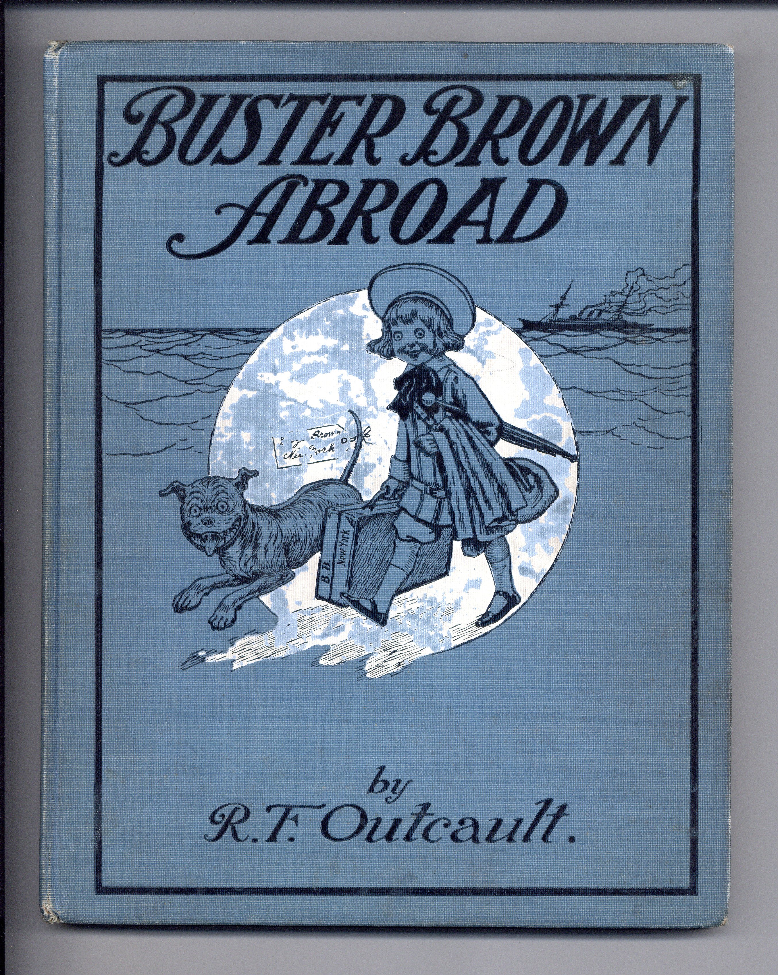 Published 1904 by Frederick A. Stokes.$80.00Buster Brown Abroad by Richard F. Outcault. Hardback edition published 1904 by Frederick A. Stokes Company, 68 pages plus endpaper and cover, text with black-and-white spot illustrations on every page. Published without a dust jacket.