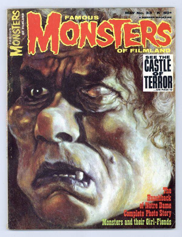Features in this issue include: "The Ape and the Ape Girl"; a filmbook of The Hunchback of Notre Dame; "Castle of Terror" (about William Castle); and more. Ron Cobb's expertly painted rendition of Lon Chaney from The Hunchback of Notre Dame graces the cover. Cover price $0.50.