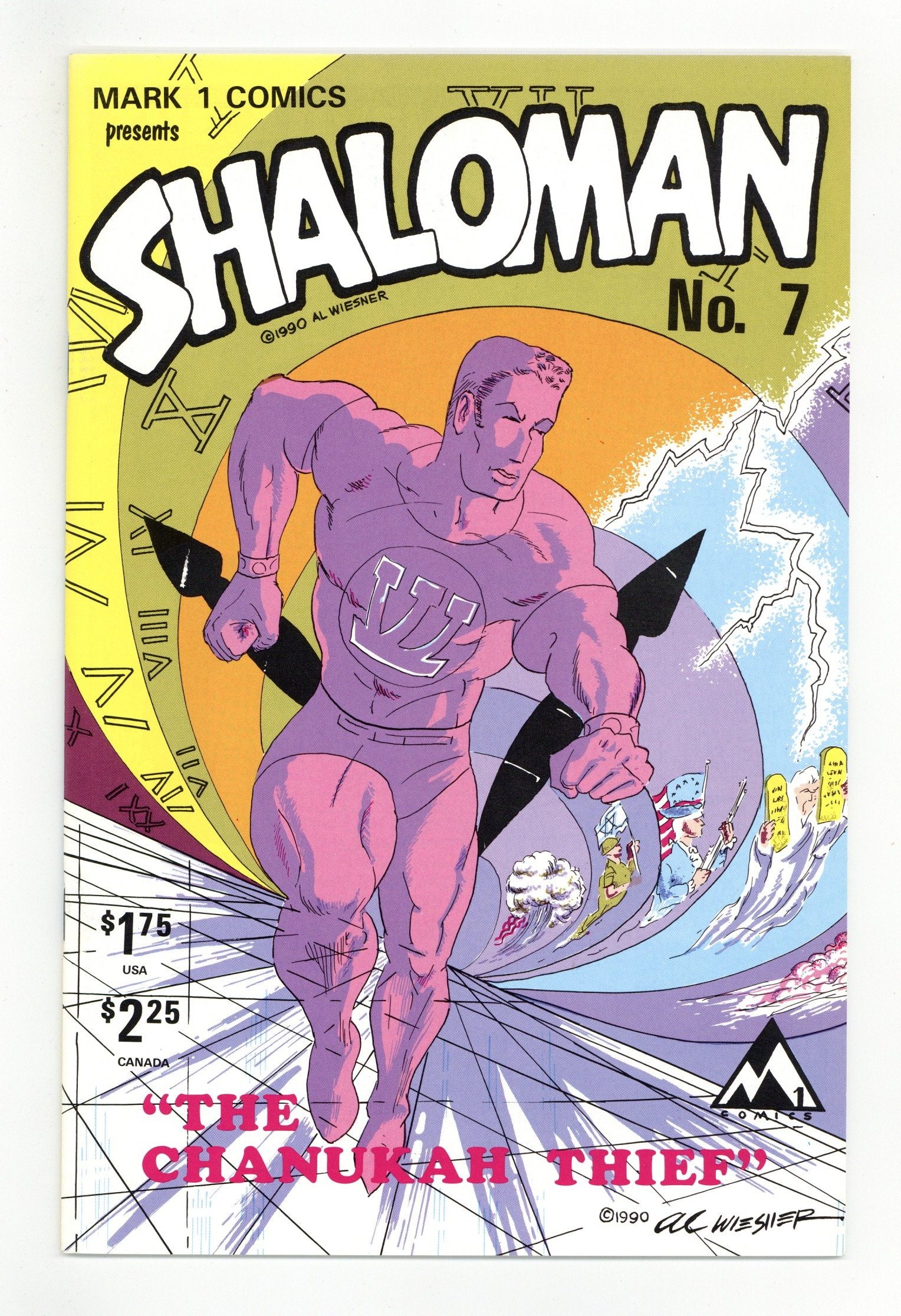 Published 1990 by Mark 1 Comics.$19.50Mark 1 Comics Presents: Shaloman. "The Chanukah Thief." Story and art by Al Wiesner. Dr. Traif goes back in time with a time machine to spill out the sacred oil before the Maccabees can find it. Cover price $1.75.