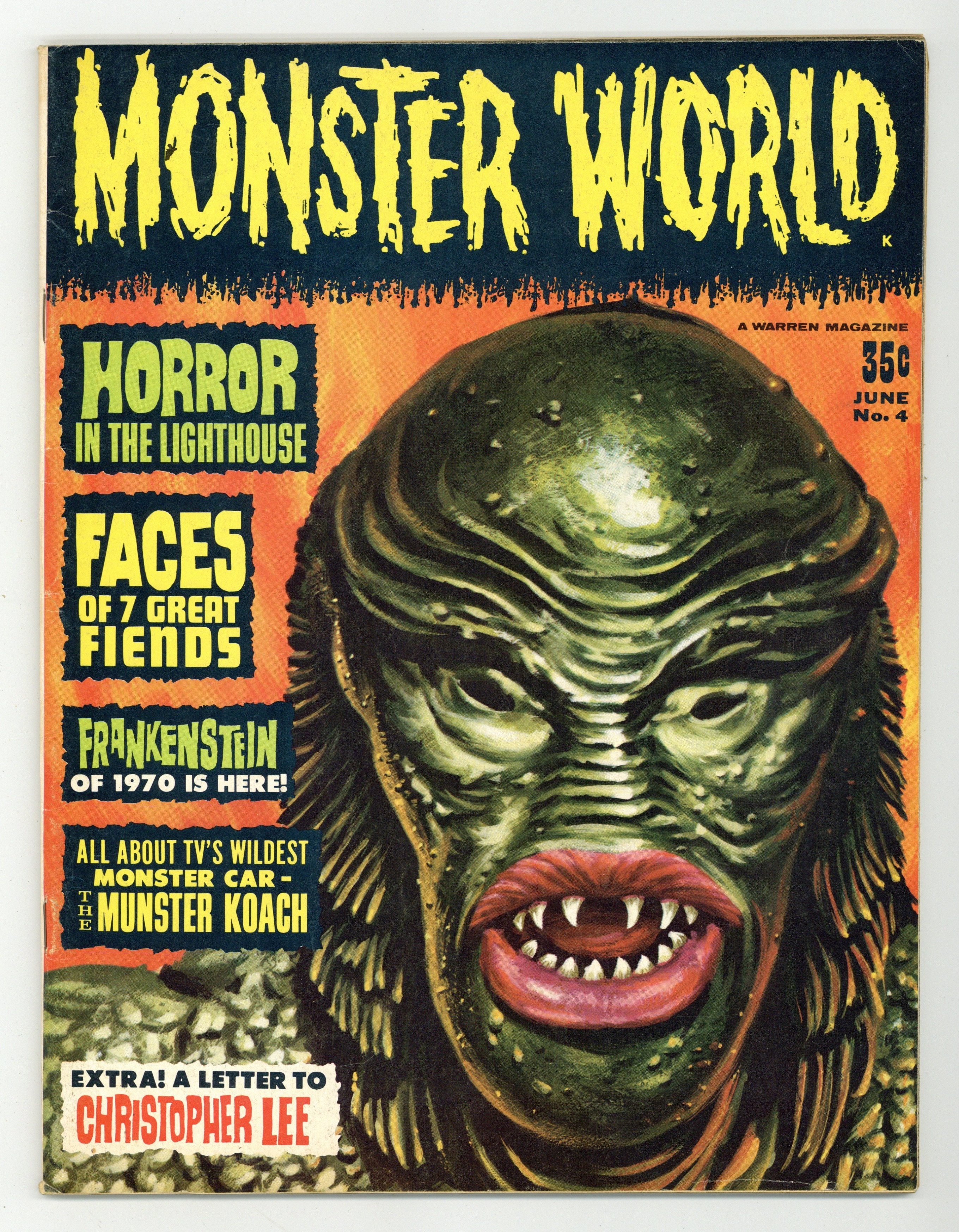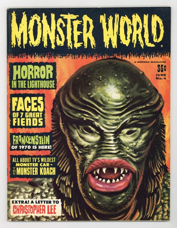 Features in this issue include: reprinted article "The Horror in The Lighthouse" by Edgar Allan Poe and Robert Bloch; a feature on the Munsters car; "The Scream Test" quiz; and more. Vic Prezio painted the Creature from the Black Lagoon cover. Cover price $0.35.
