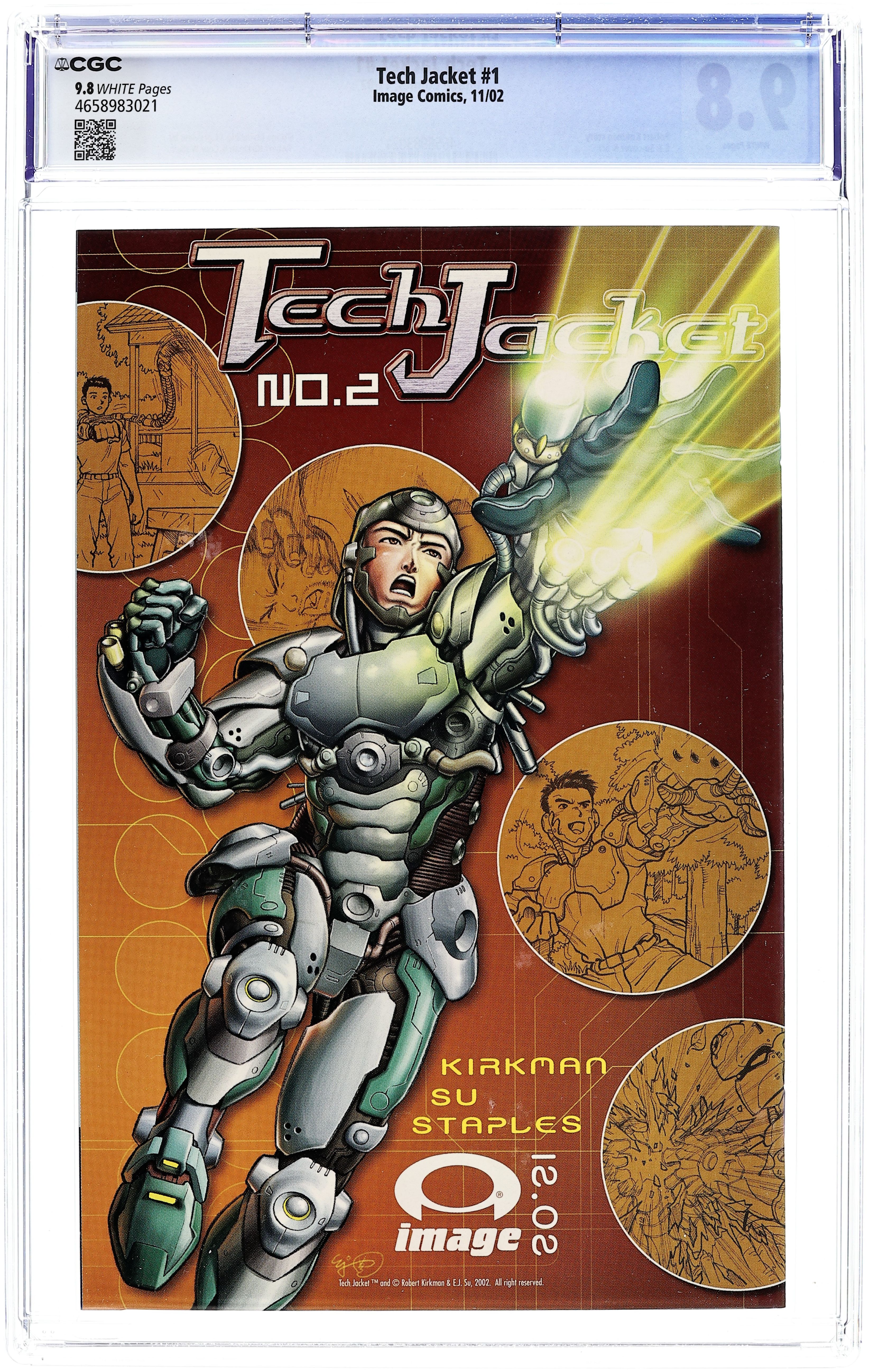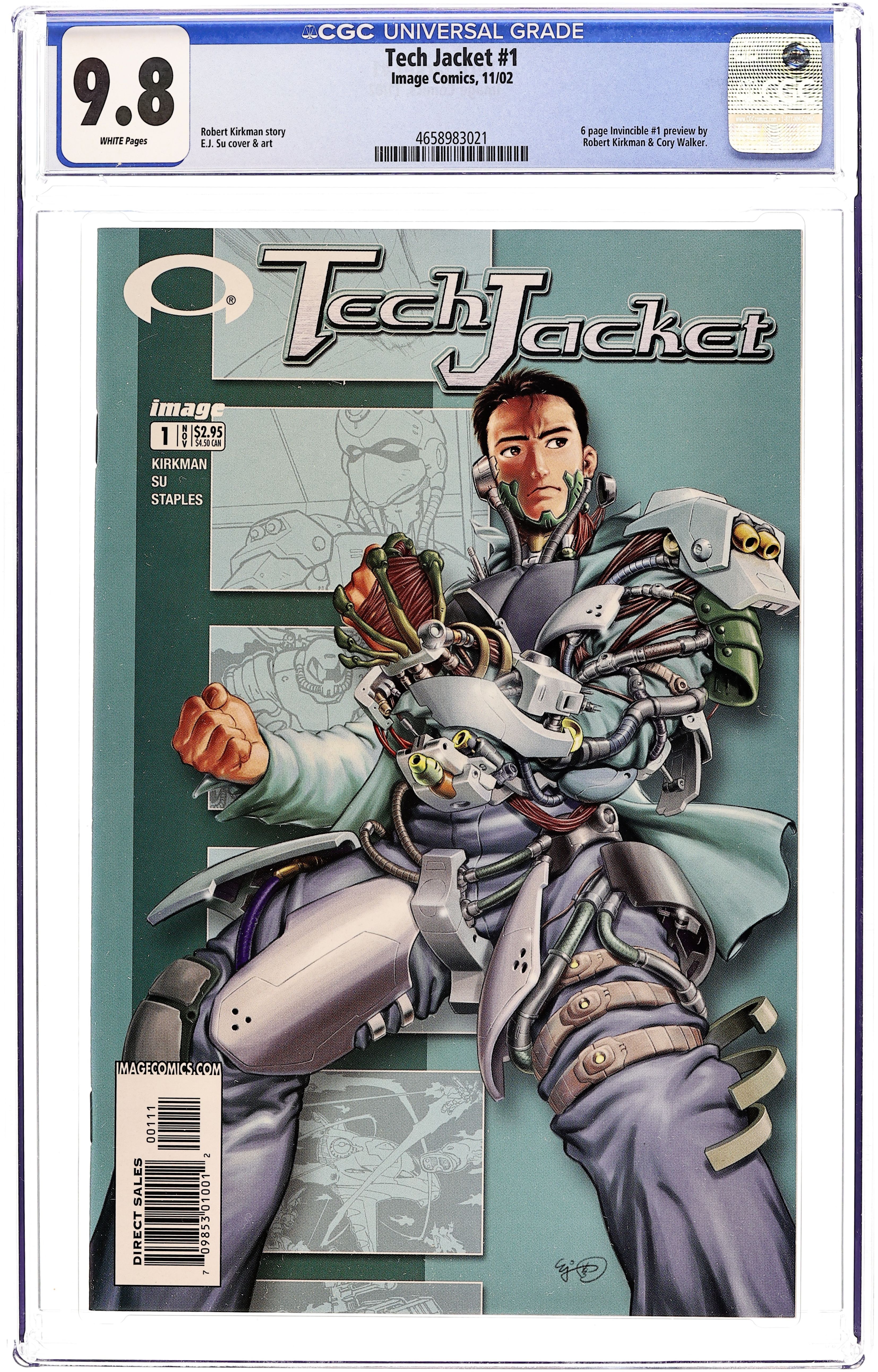 Ends Apr 27 9:41 PM CST Bid History 10 bids Current Bid $50 Your Secret Max Bid If you'd like to bid, please log in or register. (W) Robert Kirkman (J) E.J. Su (C) Val Staples (Cover) E.J. Su FC 32pp $2.95 Monthly In stores the week of November 20th. The Concept The Geldarians are a race of incredibly intelligent, yet physically weak and fragile beings. To compensate for their frailty they have invented the "Tech Jacket," a vest that every Geldarian is equipped with upon birth. Each jacket grows and matures with its host, specializing in tasks that the host will find most useful. A fully developed Tech Jacket is considered to be one of the most powerful weapons in the universe. Zack Thompson, through an event of sheer chance, has come to possess a Tech Jacket of his own. Now it appears that the fate of the entire universe rests on his shoulders as he learns that with infinite power comes infinite responsibility. This Issue ORIGIN ISSUE! In the far reaches of space, past any regions known to man, a war rages on. The Geldarians, a peaceful race, have been defending their home world against the violent and savage Kresh for nearly a millennium. When it begins to look as though neither side can gain the upper hand, the Geldarians dispatch a scout team to search the neighboring galaxies for civilizations that may aid them. Disaster strikes and one of the scout ships is forced to crash land on earth. When mild mannered teenager, Zack Thompson comes across the wreckage... things really get interesting. Cover price $2.95.