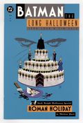 Tags: Batman$24.00"Roman Holiday." During a trial, Boss Maroni scars Harvey Dent, leading to the origin of Two-Face. Features the birthday of Carmine Falcone. Script by Jeph Loeb, art and cover by Tim Sale. Cover price $2.95.