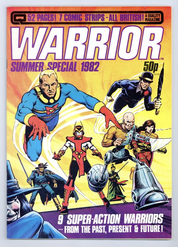 Published Jul 1982 by Quality Communications Lt.$14.00This issue contains the Miracleman (Marvelman) story "The Yesterday Gambit" which was NOT reprinted in the US. No issue # on cover. Summer Special 1982. Cover by Steve Dillon; Marvelman - Special: "The Yesterday Gambit" by Alan Moore, Steve Dillon, Paul Neary and Alan Davis ; The Spiral Path: "Caed" by Steve Parkhouse; V for Vendetta by Alan Moore and David Lloyd; The Madman by Paul Neary; Shandor, Demon Stalker by Steve Moore & David Jackson; The Golden Amazon by David Lloyd; The Origin of Pressbutton by Pedro Henry & David Jackson. Cover price $2.00.