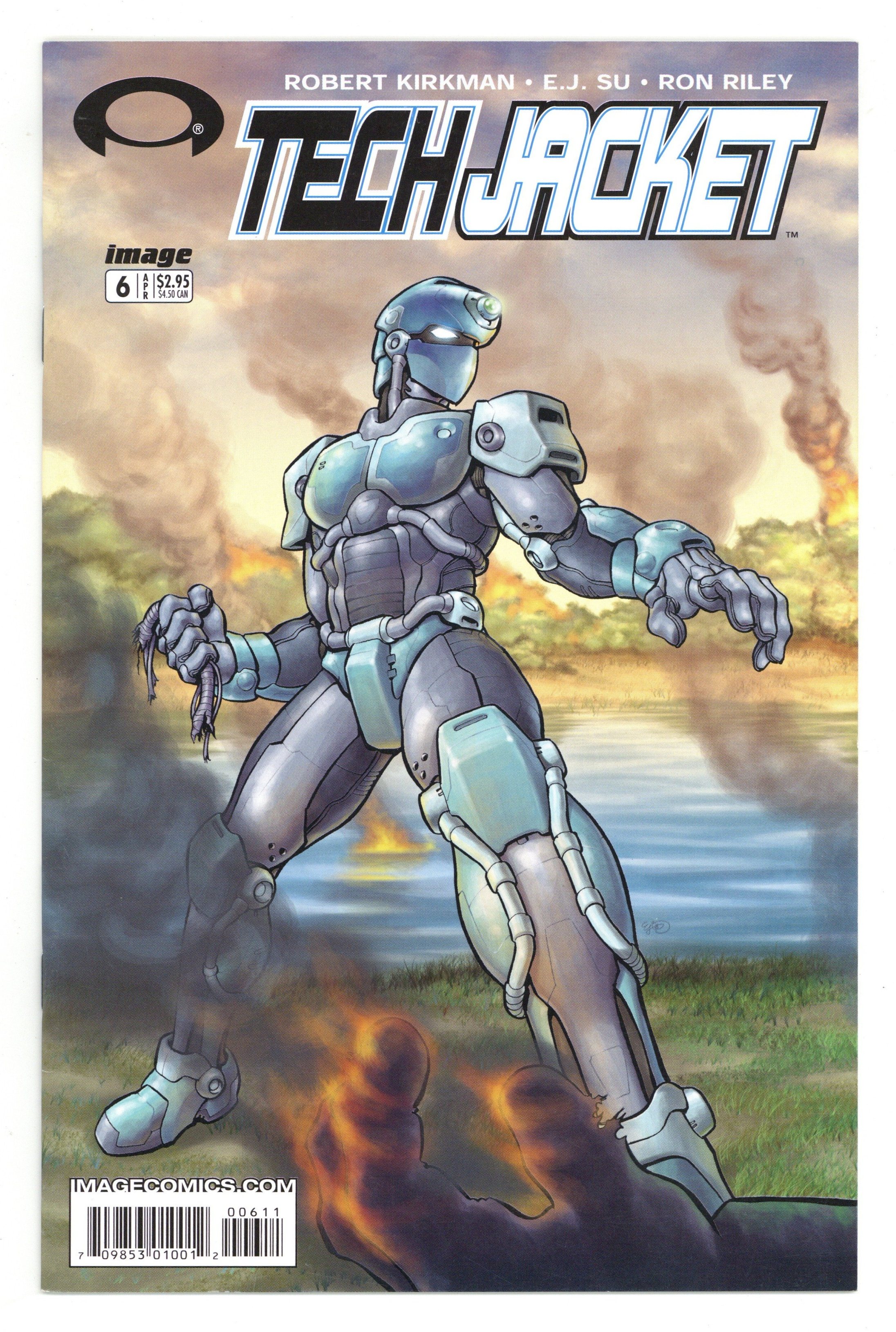 (W) Robert Kirkman (A) E.J. Su (Cover) E.J. Su FC 32pp $2.95 Ongoing monthly series In stores the week of April 9th. The Concept: The Geldarians are a race of incredibly intelligent, yet physically weak and fragile beings. To compensate for their frailty they have invented the "Tech Jacket," a vest that every Geldarian is equipped with upon birth. Each jacket grows and matures with its host, specializing in tasks that the host will find most useful. A fully developed Tech Jacket is considered to be one of the most powerful weapons in the universe. Zack Thompson, through an event of sheer chance, has come to possess a Tech Jacket of his own. Now it appears that the fate of the entire universe rests on his shoulders as he learns that with infinite power comes infinite responsibility. This Issue: With the Geldarian/Kresh war resolved, Zack is trying to settle back into his normal teenaged life on Earth. It's a tough transition, especially when you're under constant attack! It seems word has gotten out about Zack, and it's drawing some rather unsavory characters to earth. It's up to our hero to keep our world safe from these otherworldly menaces. Looks like Zack's going to have trouble finding time to study for that math quiz... but, at least he's got his priorities straight. Cover price $2.95.