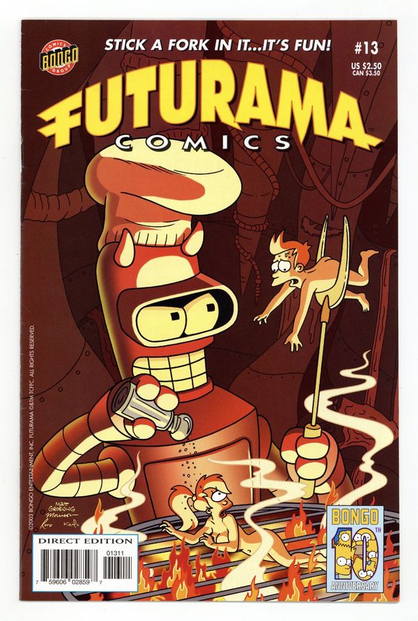 $13.00by Boothby and Lloyd Things go to hell in a handbasket when Bender loses his job after accidentally poisoning the Planet Express crew. But there are slim pickings on the unemployment line for a former bending unit turned toxic chef. That is, until he gets an offer he can't refuse...from the Robot Devil! Give the Robot Devil his due this May! FC, 32pg $2.50 Cover price $2.50.
