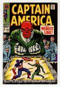 Tags: Marvel Legacy Numbering: Captain America (part 103), Captain America$37.50Cover pencils by Jack Kirby, inks by Syd Shores. "The Weakest Link!", script by Stan Lee, pencils by Jack Kirby, inks by Syd Shores; During a date with Agent 13, Captain America learns that her name is Sharon Carter; The date gets disrupted by the Red Skulls minions, who defeat Cap and take Sharon to Exile Island; The Red Skull and the Exiles force two of their slaves to battle one other; Sharon Carter's name is revealed in this issue. (Previously she was known as Agent 13.)36 pgs., full color. $0.12. Cover price $0.12.