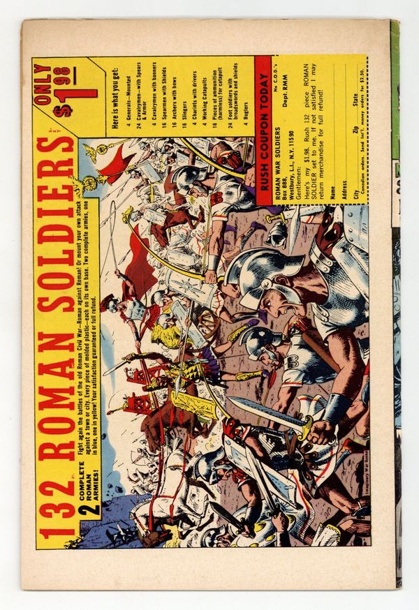 Cover pencils by Jack Kirby, inks by Syd Shores. "The Weakest Link!", script by Stan Lee, pencils by Jack Kirby, inks by Syd Shores; During a date with Agent 13, Captain America learns that her name is Sharon Carter; The date gets disrupted by the Red Skulls minions, who defeat Cap and take Sharon to Exile Island; The Red Skull and the Exiles force two of their slaves to battle one other; Sharon Carter's name is revealed in this issue. (Previously she was known as Agent 13.)36 pgs., full color. $0.12. Cover price $0.12.