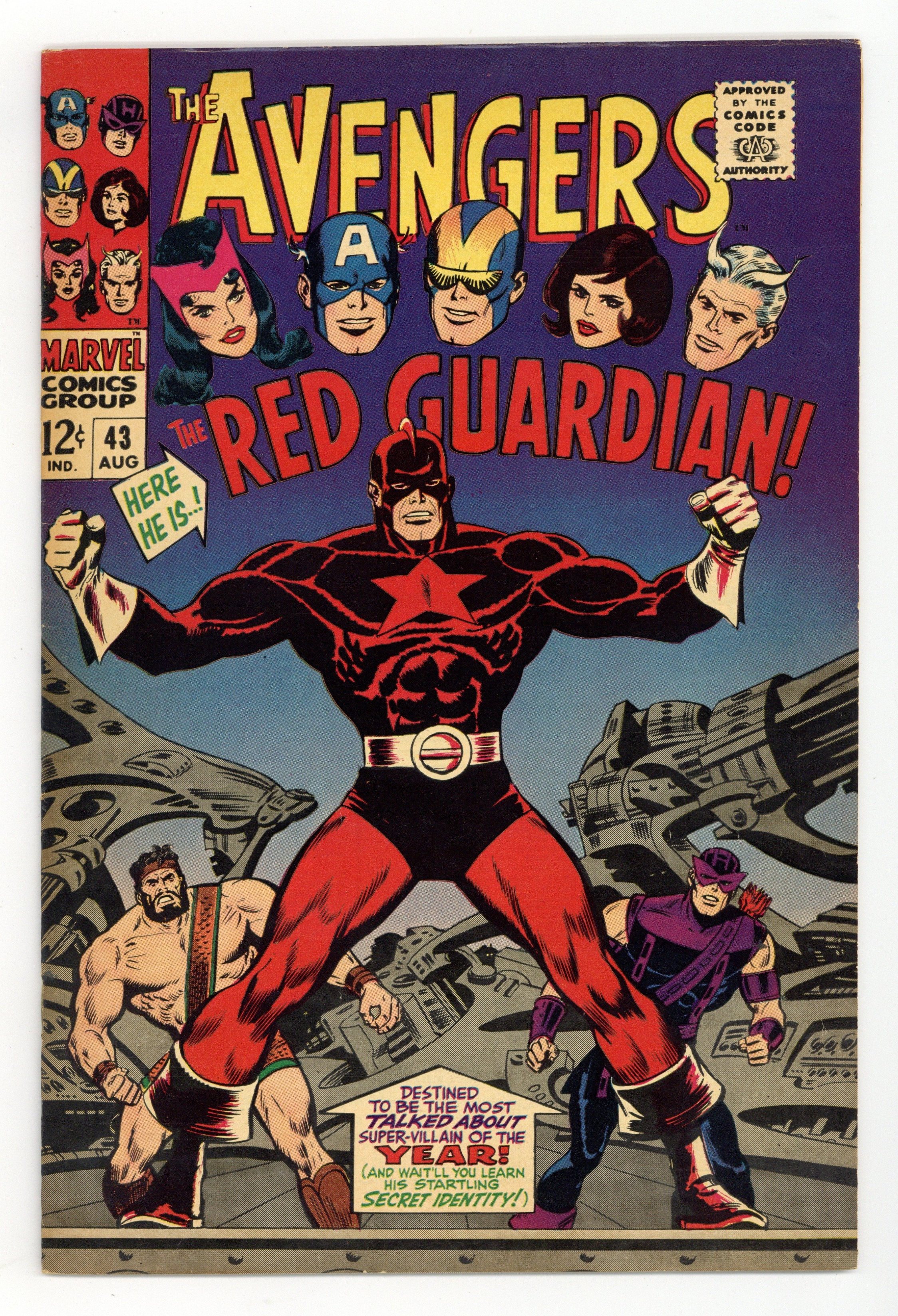 Ends Apr 14 7:38 PM CST Bid History 6 bids Current Bid $35 Your Secret Max Bid If you'd like to bid, please log in or register. First appearance of the Red Guardian in "Color Him...the Red Guardian!" Part 1 of 2. Script by Roy Thomas. Pencils by John Buscema. Inks by George Roussos (as George Bell). Cover by John Buscema and George Roussos. After receiving a tip concerning the Black Widow's whereabouts, Hawkeye andHercules travel to the Far East to rescue her! But her communist captors have created a super-powered adversary to oppose them: the Red Guardian! Once the Prince of Power and the ace archer arrive in the Middle Kingdom, they defeat the guard force and challenge the Red Guardian! However thecommunist champion is smart and tough! He uses the Psychotron to confuse Hercules -- and next uses his belt weapon to knock out Hawkeye. And then while basking in the glow of his victory, the guardian makes a shocking announcement: Natasha Romanoff is his wife! What a red-letter day for the Red Guardian! Avengers Lineup: Captain America, Goliath, Hawkeye, Hercules, Quicksilver, Scarlet Witch, and the Wasp. (Note: This story was reprinted in Marvel Triple Action #35.) 36 pages. Cover price $0.12.