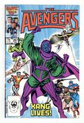 "Time--And Time Again!" Part 1 of 3. Script by Roger Stern. Art by John Buscema (breakdowns) and Tom Palmer (finishes). Cover by John Buscema and Tom Palmer. The Conqueror is back! Wow, where has he been? Or perhaps the better question…When has he been? After a 10-year absence Kang the Conqueror returns to the pages of the Avengers! But it's not just one Kang, it's many Kangs! And rest assured…the Kang from the 41st century (that Earth's Mightiest Heroes know and love) is front and center! Meanwhile in the sub-basements underneath Avengers Mansion, Hercules, the Black Knight, and the Wasp work on boring a new tunnel to Hydro-Base. The tunneling is going great until the Hulk attacks! Then Giant-Man! Then the old Iron Man! It's like a rerun of the battle in Avengers issue 2 vs. the Space Phantom! Who could take the Avengers back in time? Who else, but the Master of Time! Cameo appearances by Iron Man, Storm, Colossus, and President Reagan in an alternate reality. Avengers Lineup: Black Knight, Captain America, Captain Marvel, Hercules, Sub-Mariner, and the Wasp. (Note: Kang previously appeared in the Avengers title in the classic Avengers 143.) 36 pgs. Cover price $0.75.