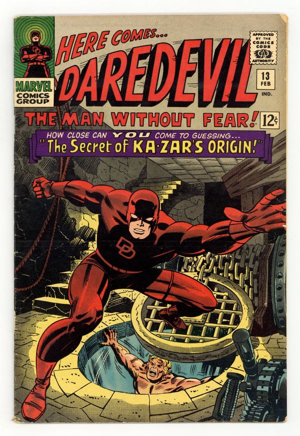 Starts Feb 9 Cover pencils by Jack Kirby, inks by Mike Esposito and John Romita (heavy re-touching). Ka-Zar guest stars in The Secret of Ka-Zar's origin!, script by Stan Lee, breakdowns by Jack Kirby, finished art by John Romita Sr.; DD and Ka-Zar battle the Plunderer as the villain regales them with his origin and the origin of his savage brother; The Plunderer is after half of a necklace that his father gave the two brothers that will open a vault to a substance that destroys all weaponry; Everybody gets greedy and even the pirates and the butler vie for the halves of the medallion. 36 pgs. Cover price $0.12. Cover price $0.12.