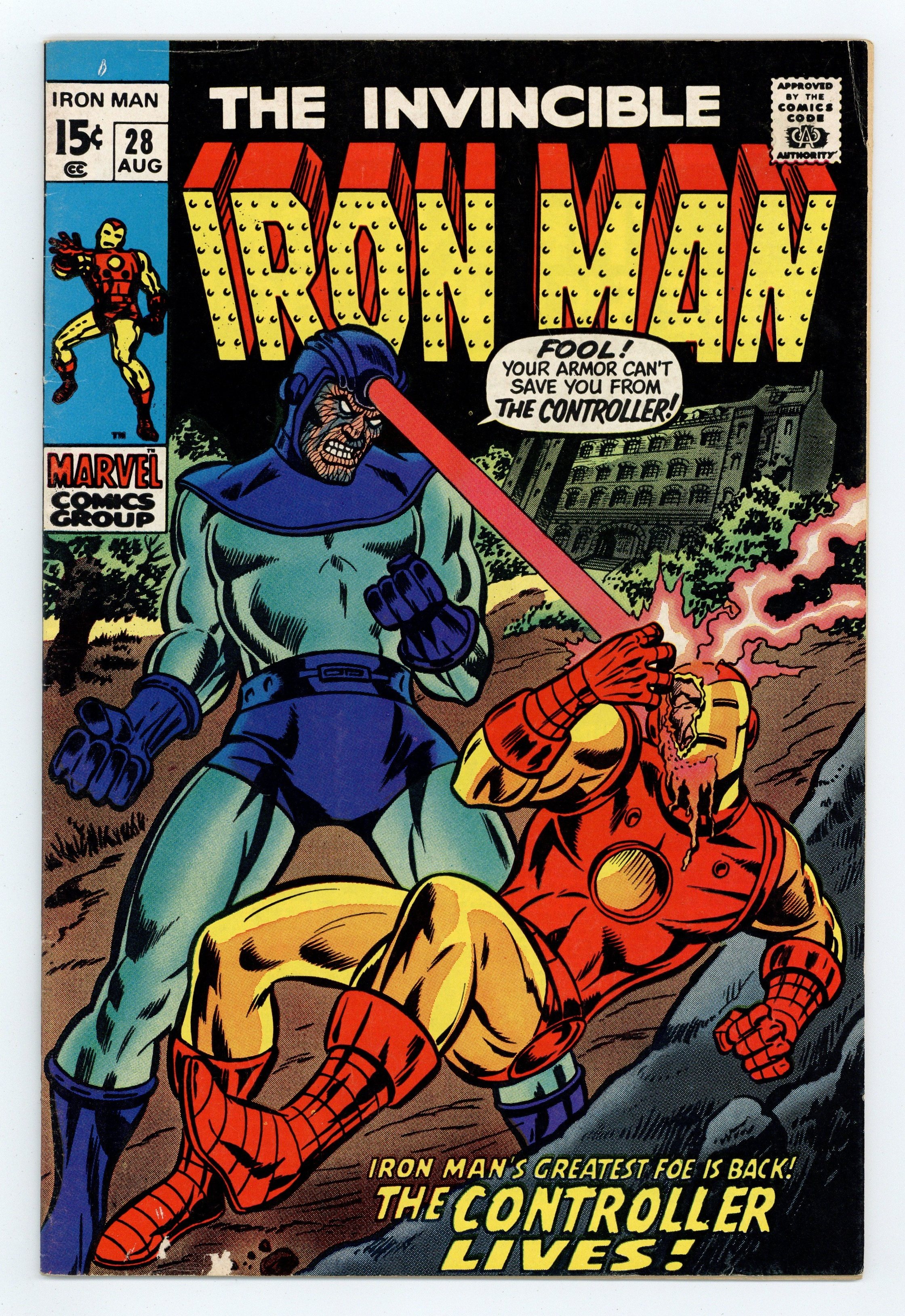 Tags: Marvel Legacy Numbering: Iron Man (part 28), Iron Man$25.50"The Controller Lives!" Story by Archie Goodwin. Art by Don Heck and Johnny Craig. Cover by Marie Severin and Mike Esposito. Tony Stark and Jasper Sitwell are on their way to the Pinewood Sanitarium in a response to a cry for help. A woman from Tony's past, Meredith McCall, is in danger. It so happens that there is another resident of the upstate New York sanitarium that Tony also knows...Basil Sandhurst, the Controller! Has Iron Man's old foe taken control of the sanitarium? Flashback appearance of Tony Stark's father, Howard Anthony Stark. (Note: This issue includes a half-page ad for Astonishing Tales 1 featuring Ka-zar and Doctor Doom.) 32 pages Cover price $0.15.