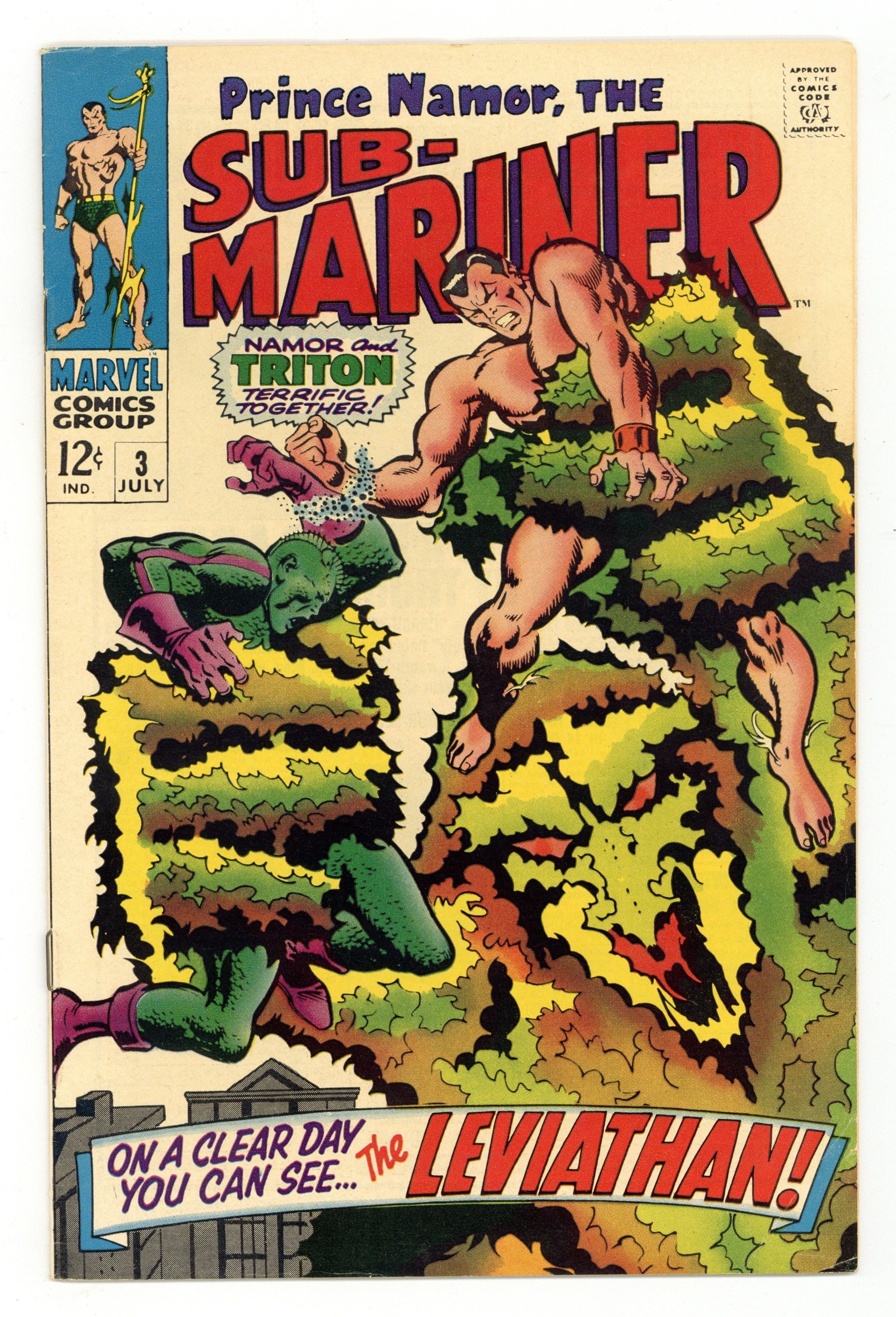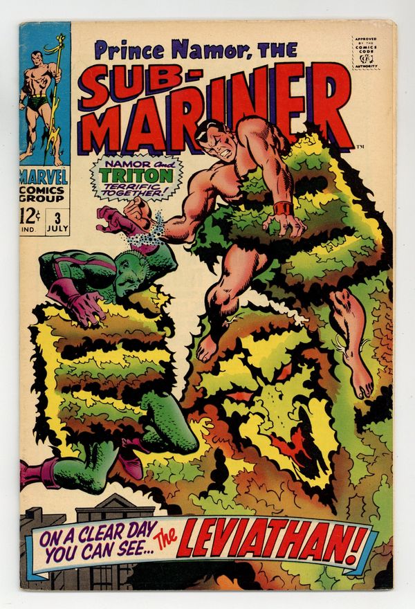 "On a Clear Day You Can See the Leviathan!" Guest-starring Triton. Written by Roy Thomas. Art by John Buscema and Frank Giacoia. can even the Savage Sub-Mariner and the uncanny Inhuman Triton stop the mad scheme of the diabolical Plant Man? 32 pages, FC. Cover price $0.12.