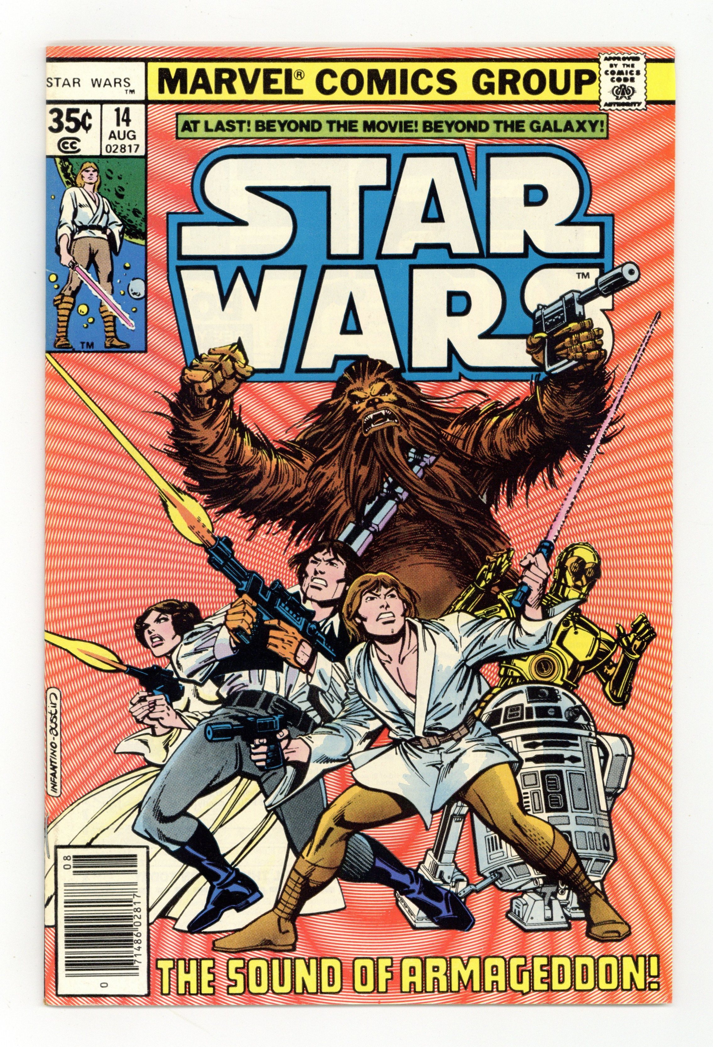 "The Sound of Armageddon!" Written by Archie Goodwin. Art by Carmine Infantino and Terry Austin. Luke, Leia, Han, and the rest battle pirates, sea monsters and each other on a dangerous and desolate waterworld. Cover price $0.35.