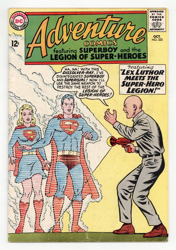 Cover pencils by Curt Swan, inks by Sheldon Moldoff. Lex Luthor Meets the Legion of Super-Heroes!--Tales of the Legion of Super-Heroes, script by Edmond Hamilton, art by John Forte; Lex Luthor convinces the Legion he has come to the future from a time before he turned evil. But when Luthor reveals his true nature and seemingly dissolves the Legionnaires, they have the last laugh on him. Professor Eureka humor page by Henry Boltinoff. The Day Superboy Was a Coward! starring Superboy, script by Otto Binder, art by George Papp. The Legion Constitution -- Part One article. Rocky and Bullwinkle star in a one-page Cheerios ad. 36 Pages, Full Color. Cover price $0.12.