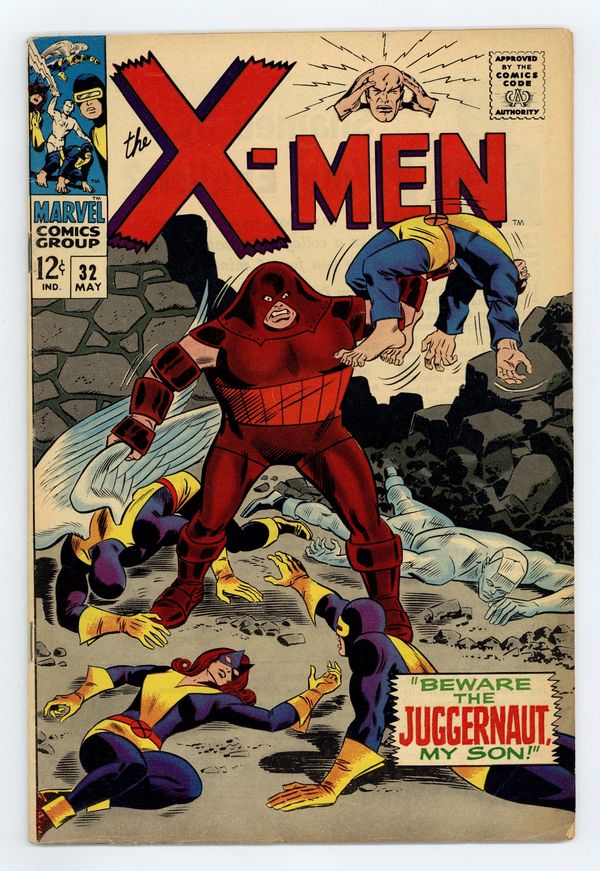 Ends Feb 2 9:52 PM CST Bid History 9 bids Current Bid $26 Your Secret Max Bid If you'd like to bid, please log in or register. Cover pencils by Jack Kirby (layouts) and Werner Roth, inks by John Tartaglione. Beware the Juggernaut, My Son!, script by Roy Thomas, pencils by Werner Roth, inks by John Tartaglione; the X-Men attend Icemans 18th birthday party; Xavier works on Juggernaut, who is unconscious in the basement of the mansion. Ad for The Merry Marvel Marching Society. 36 pgs. $0.12. Cover price $0.12.