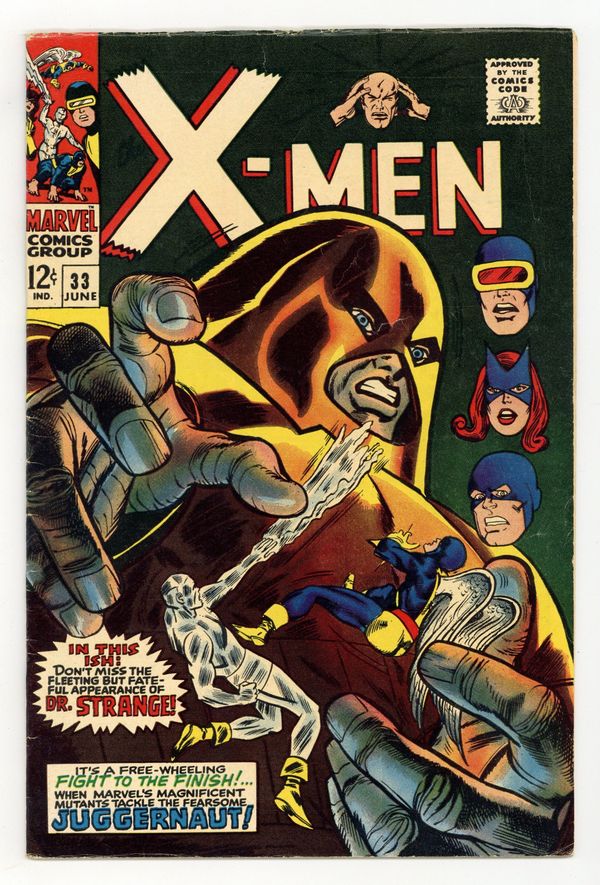 Starts Feb 2 Cover pencils by Gil Kane, John Romita, and Werner Roth, inks by Gil Kane and John Romita; Juggernaut rampages to Factor Three headquarters; Professor X shows Jean a story about the ruby of Crimson Bands; Cameos by Doctor Strange and the Ancient One. Ad for the Merry Marvel Marching Society. 36 pgs. $0.12. Cover price $0.12.