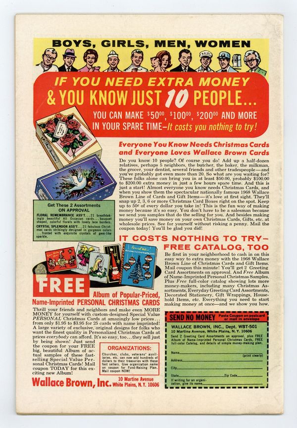 Tags: X-Men$48.50Cover pencils by John Romita, inks by Frank Giacoia. Beware Computo Commander of the Robot Hive!, script by Arnold Drake, pencils by Don Heck and Werner Roth, inks by John Verpoorten; Iceman and Beast go to California while Cyclops and Jean battle robots in New York; a giant robot named Computo makes small robot warriors; Quasimodo appears. Yours Truly the Beast, script by Arnold Drake, pencils by Werner Roth, inks by John Verpoorten; Beasts abilities explained. Letter to the editor from comic writer Tony Isabella. 36 pgs. $0.12. Cover price $0.12.