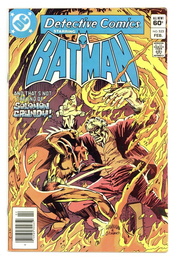Tags: Batman, Green Arrow$37.00Cover pencils by Ed Hannigan, inks by Dick Giordano. "Inferno," script by Gerry Conway, pencils by Gene Colan, inks by Tony deZuniga; Batman learns that Solomon Grundy is haunting the sewers of Gotham City with a gang of criminals. "Mob Rule!", script by Joey Cavalieri, pencils by Irv Novick, inks by Ron Randall; After stopping a riot at the site of a strike, Green Arrow notices two men who had fought each other acting chummy and tails one of them. He discovers that the man is part of a group that intends to throw Star City into chaos and then usurp leadership, with a plot created by their adviser, Lord Machiavelli; GA reveals his presence, whereupon Machiavelli calls upon his partner, the Executrix, to battle him with twin laser-torches. Letter from T.M. Maple. 36 pgs., full color. $0.60. Cover price $0.60.