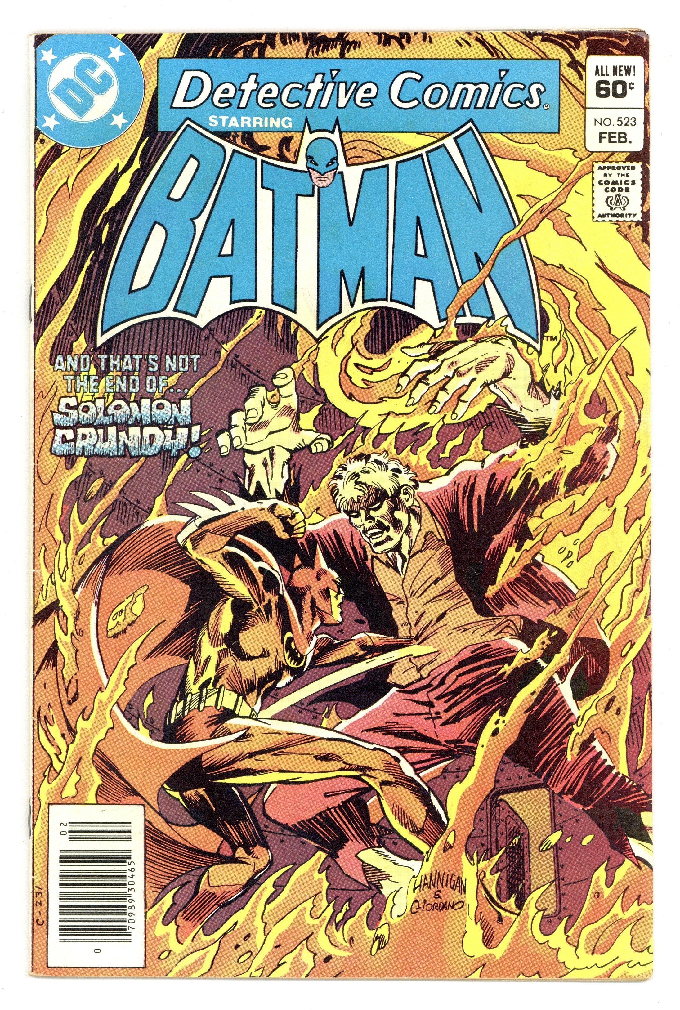 Cover pencils by Ed Hannigan, inks by Dick Giordano. "Inferno," script by Gerry Conway, pencils by Gene Colan, inks by Tony deZuniga; Batman learns that Solomon Grundy is haunting the sewers of Gotham City with a gang of criminals. "Mob Rule!", script by Joey Cavalieri, pencils by Irv Novick, inks by Ron Randall; After stopping a riot at the site of a strike, Green Arrow notices two men who had fought each other acting chummy and tails one of them. He discovers that the man is part of a group that intends to throw Star City into chaos and then usurp leadership, with a plot created by their adviser, Lord Machiavelli; GA reveals his presence, whereupon Machiavelli calls upon his partner, the Executrix, to battle him with twin laser-torches. Letter from T.M. Maple. 36 pgs., full color. $0.60. Cover price $0.60.