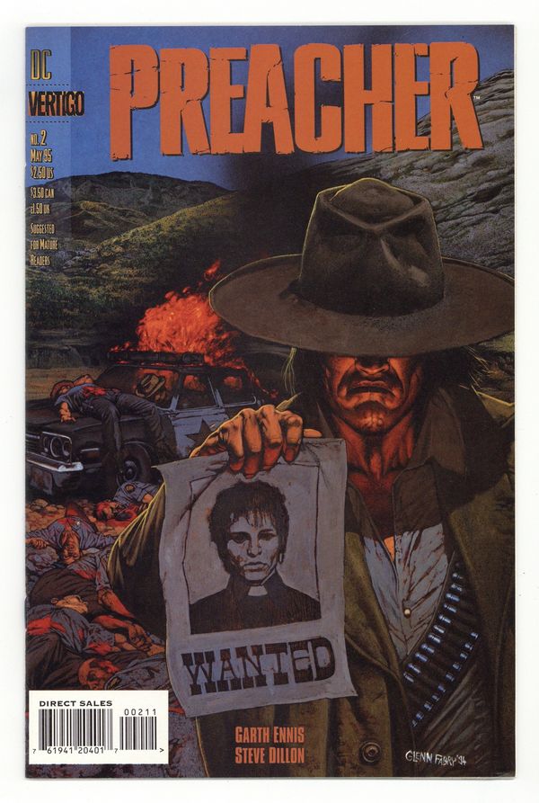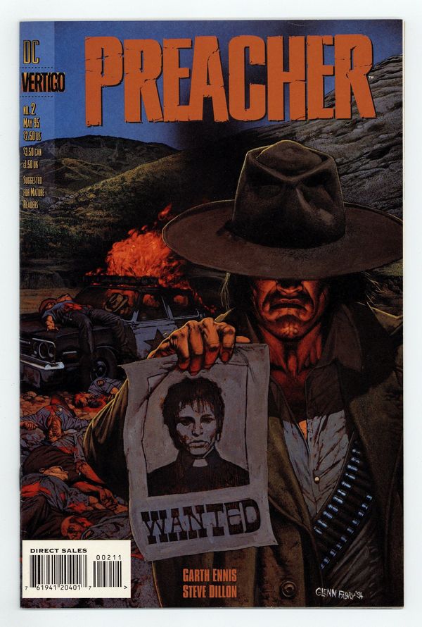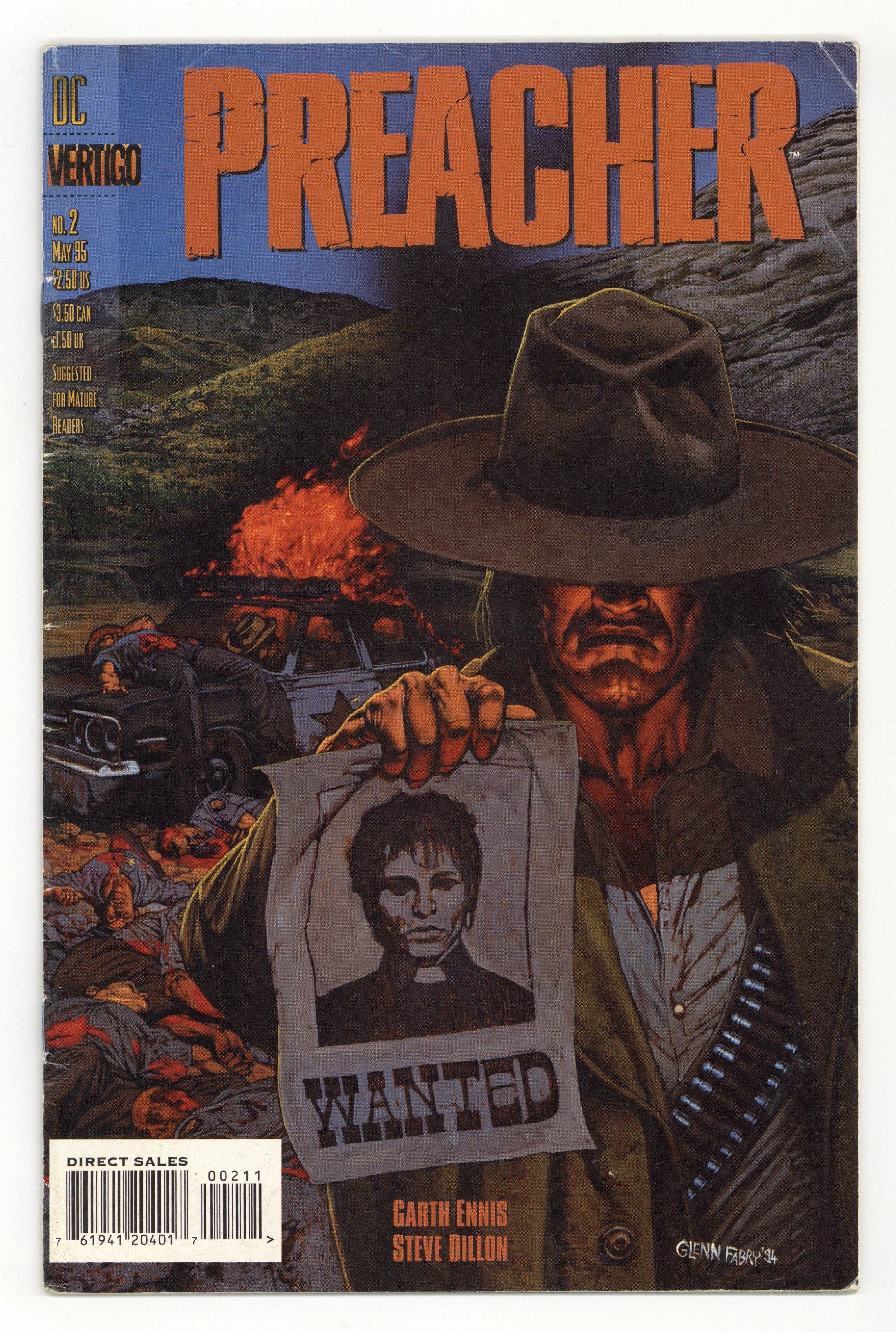 Published May 1995 by DC/Vertigo.$34.00Painted cover by Glenn Fabry. And Hell Followed With Him, script by Garth Ennis, art by Steve Dillon; Sheriff Root faces the Saint of Killers. 36 pgs. $2.50. Cover price $2.50.