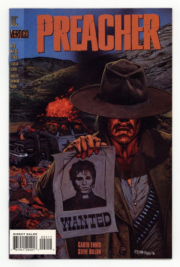 Published May 1995 by DC/Vertigo.$25.00Painted cover by Glenn Fabry. And Hell Followed With Him, script by Garth Ennis, art by Steve Dillon; Sheriff Root faces the Saint of Killers. 36 pgs. $2.50. Cover price $2.50.