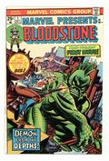 $17.75Cover pencils by Gil Kane, inks by Frank Giacoia. Origin and 1st appearance of Bloodstone in "Dweller From the Depths!," script by John Warner, pencils by Mike Vosburg, inks by Bob McLeod; Ulysses Bloodstone battles a creature the Possessor calls from the sea. "Part Two: The Lurker Within," script by John Warner, art by Pat Boyette; Bloodstone fights the Possessor and during the battle the Possessor attempts to possess Bloodstone and is able to reach into Bloodstone's mind and see his life before he obtained the bloodstone. Marvel Comic Con 1975 ad. Marvel Bullpen Bulletins: The King Is Back!; 'Nuff Said!; Stan Lee's Soapbox. 36 pgs., full color. $0.25. Cover price $0.25.