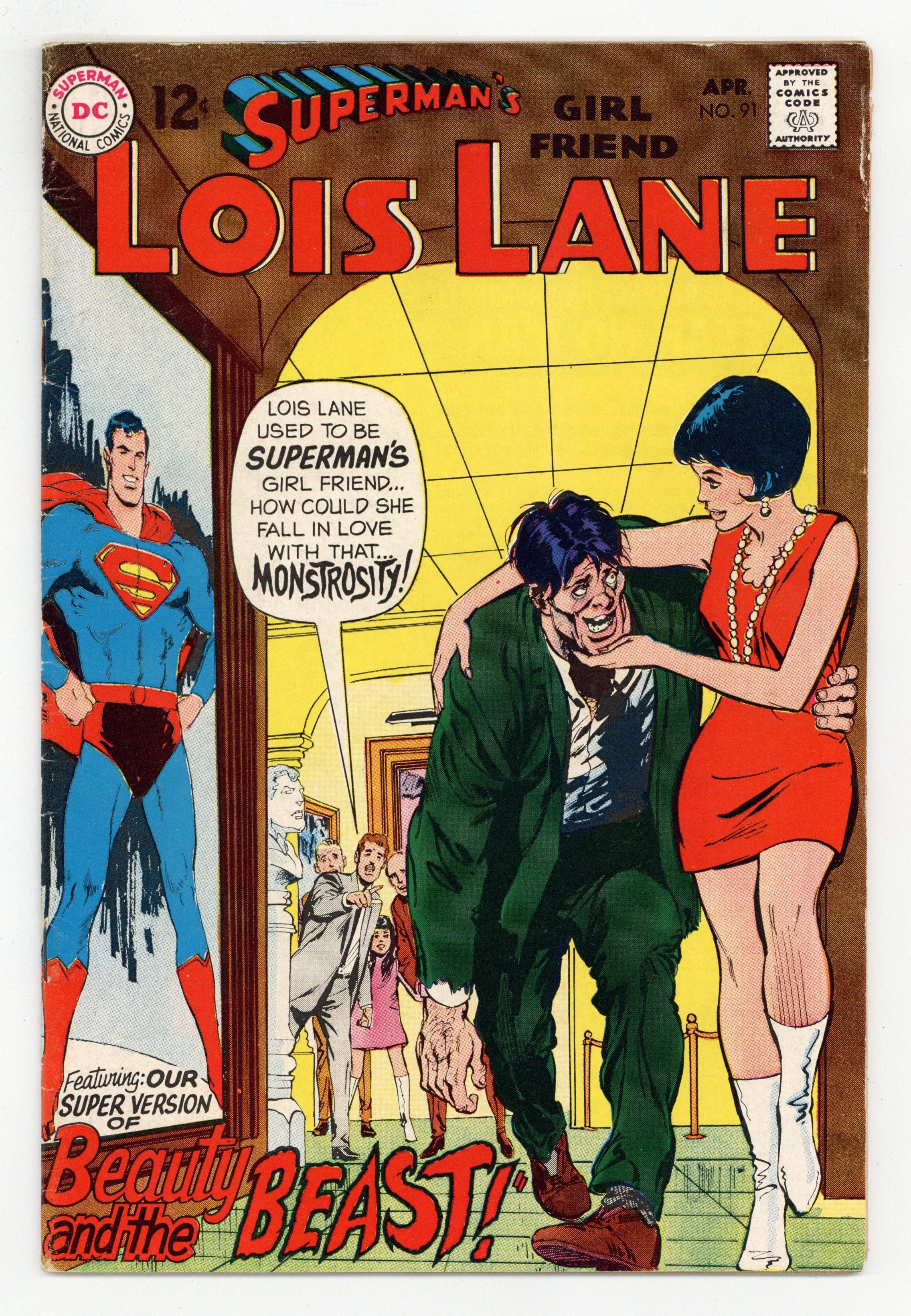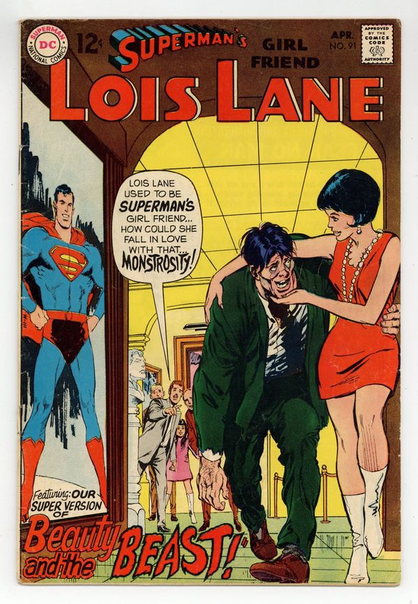 Cover art by Neal Adams. Love is Blind! [Part I], pencils by Curt Swan, inks by Mike Esposito; When Lois is blinded trying to save Superman from a deadly ray, Superman marries her to repay her. House ad for Bat Lash #4. House ad for The Brave and the Bold #83. Part II - The Blind Beauty and the Beast!; Lois meets a kind man but does not know that he is deformed. House ad for Metal Men #37. 36 Pages, Full Color. Cover price $0.12.