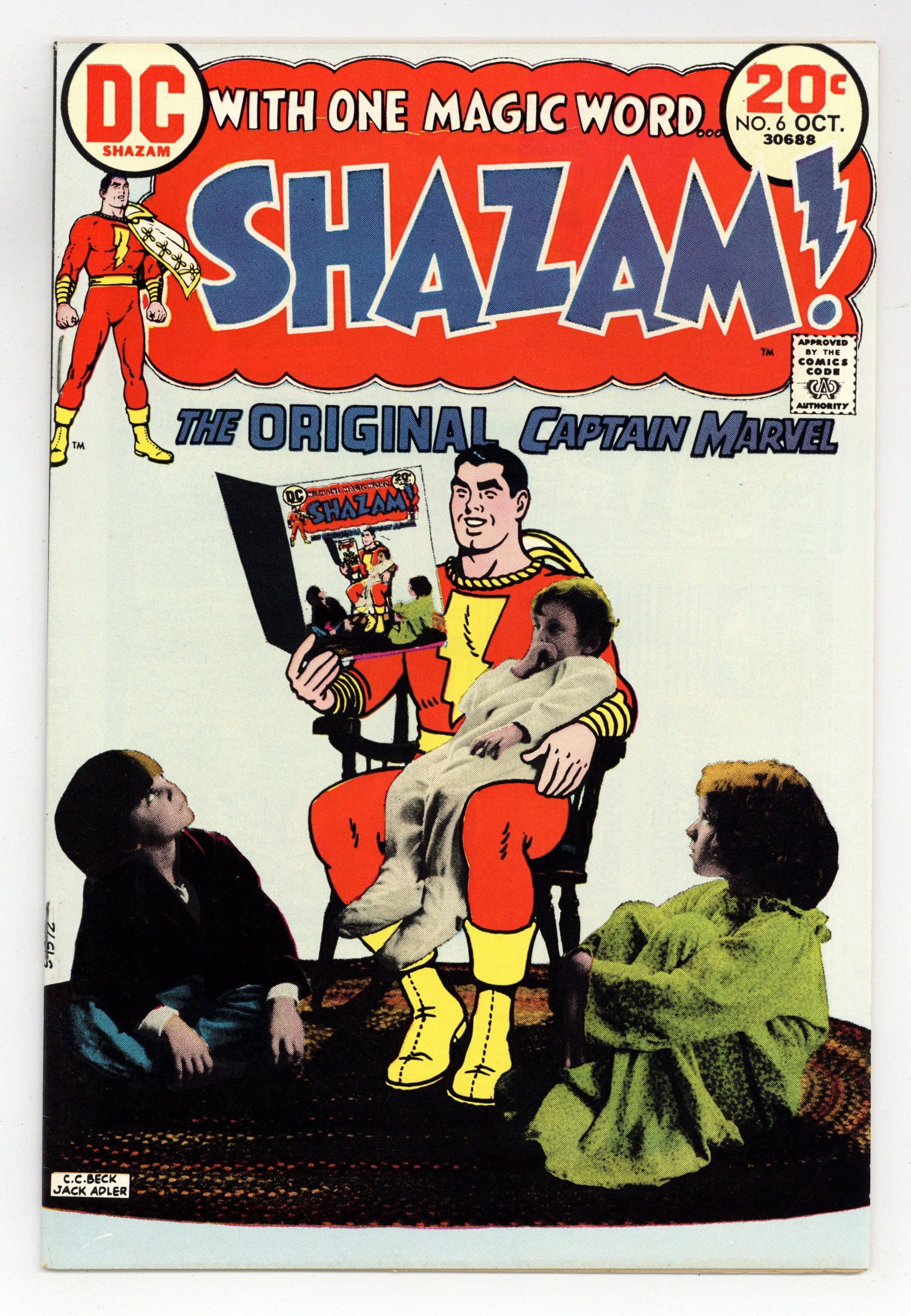 Cover by C. C. Beck and Jack Adler. Better Late Than Never!, script by Denny O'Neil, art by C. C. Beck; Dr. Sivana tricks Billy into wearing a watch made of Suspendium which freezes Billy and Captain Marvel as they try to say "Shazam." Dexter Knox and His Electric Grandmother!, script by Elliot S! Maggin, art by C. C. Beck; When Grandmother Knox dusts Dexter's latest invention she is super-charged with electricity which is later used to power the lights in Miami after a blackout. Reprint back-up: "The Marvel Family Battles the Man Who Changed the World" from m The Marvel Family #53 in 1950, script by Otto Binder, art by Kurt Schaffenberger. Information about the tabloid sized book, The Amazing World of Superman. 36 pgs., full color. $0.20. Cover price $0.20.