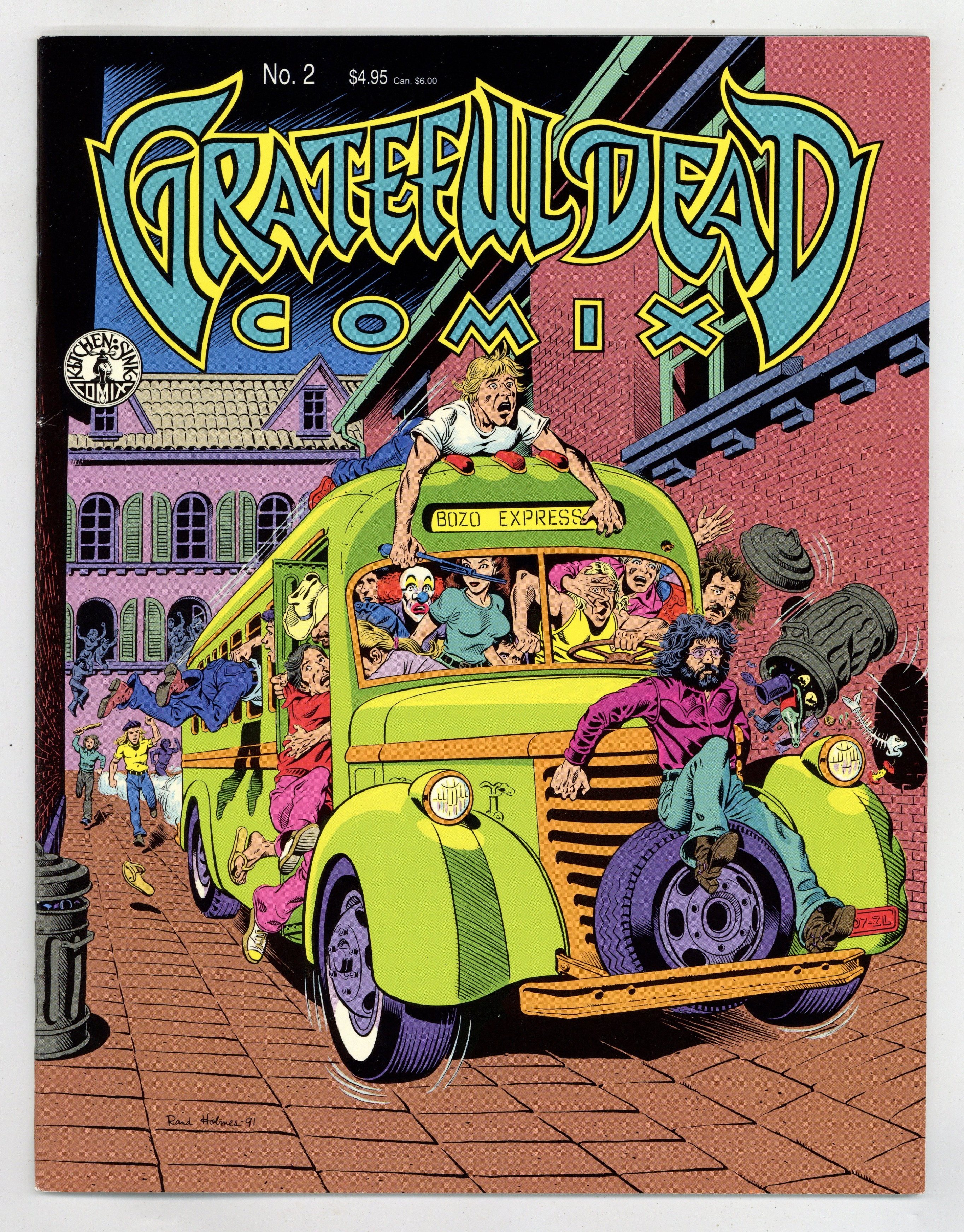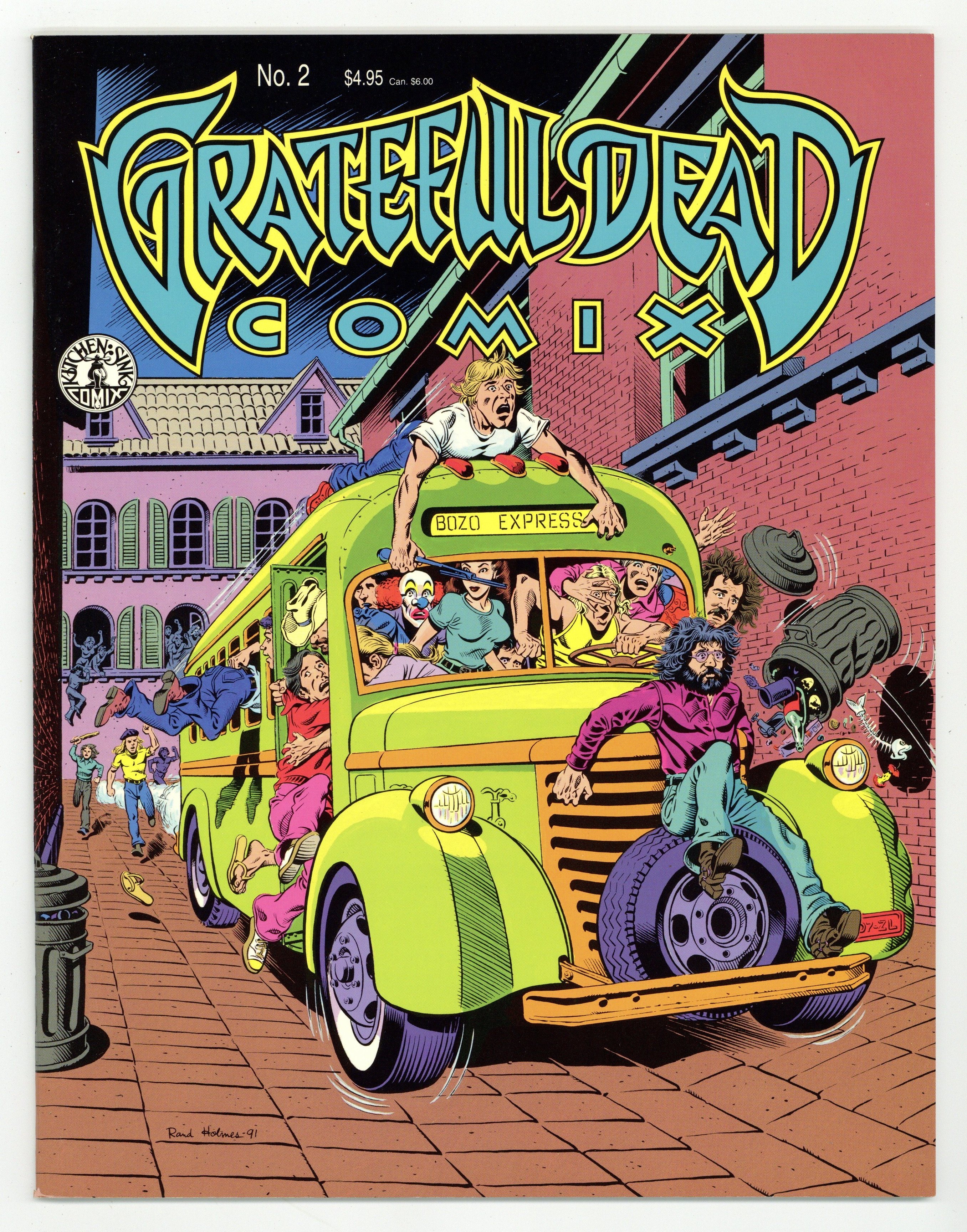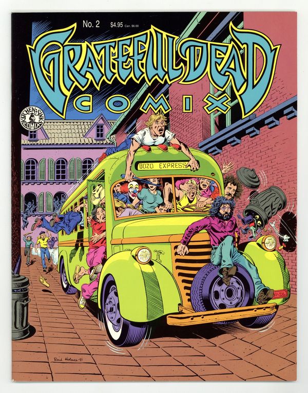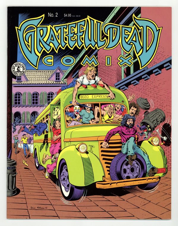 Published 1991 by Kitchen Sink.$15.00A true tale of the Dead on tour in Europe by Rand Holmes of Harold Hedd. A rare Holmes story in color; most of his underground work was black and white. Comics adaptations of Grateful Dead songs: Friend of the Devil by Frank Gresham, Cumberland Blues by Tim Truman, Terrapin Station continued by Dan Steffan. Cover by Holmes. Full color; 36 pages. Cover price $4.95.