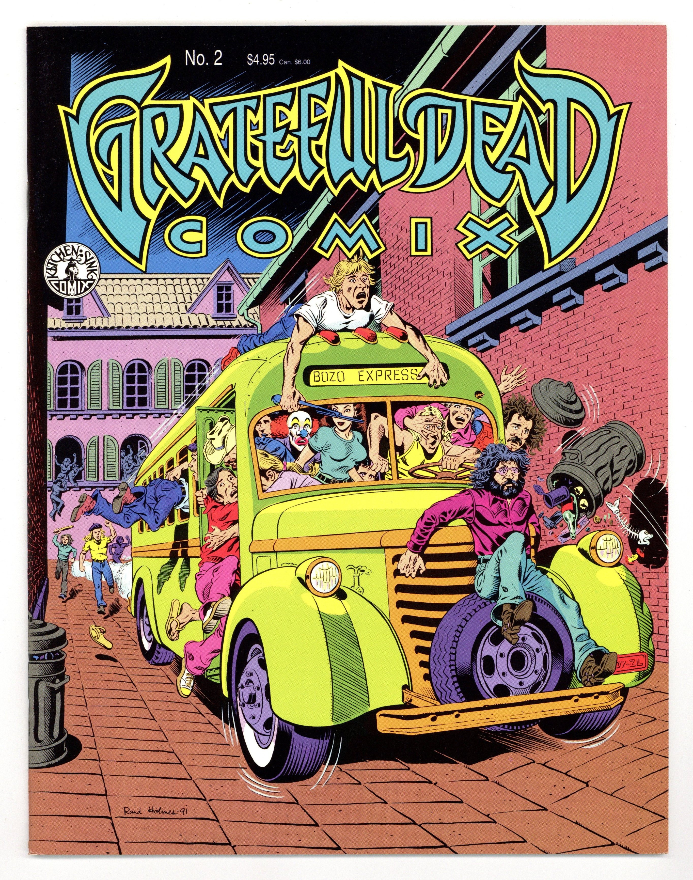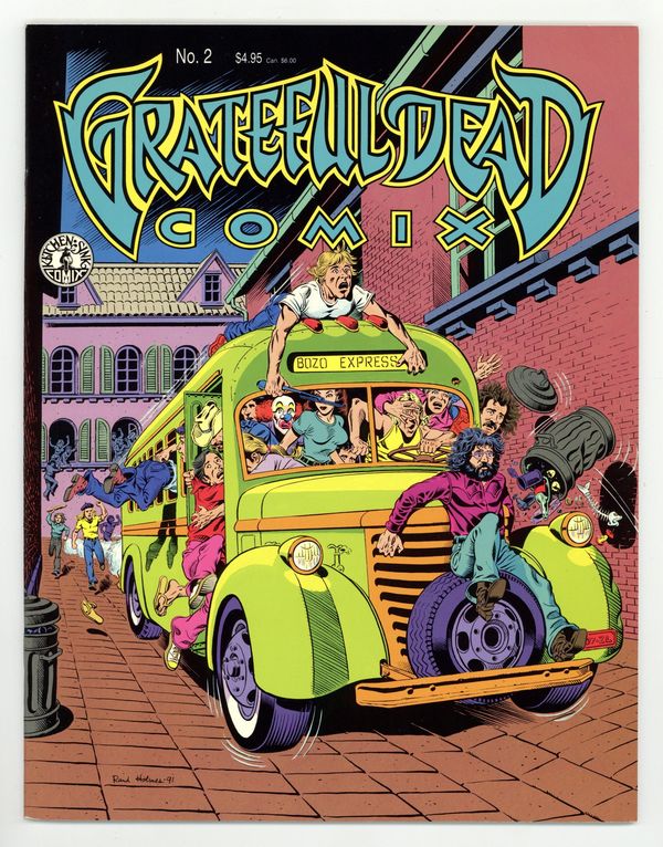 A true tale of the Dead on tour in Europe by Rand Holmes of Harold Hedd. A rare Holmes story in color; most of his underground work was black and white. Comics adaptations of Grateful Dead songs: Friend of the Devil by Frank Gresham, Cumberland Blues by Tim Truman, Terrapin Station continued by Dan Steffan. Cover by Holmes. Full color; 36 pages. Cover price $4.95.