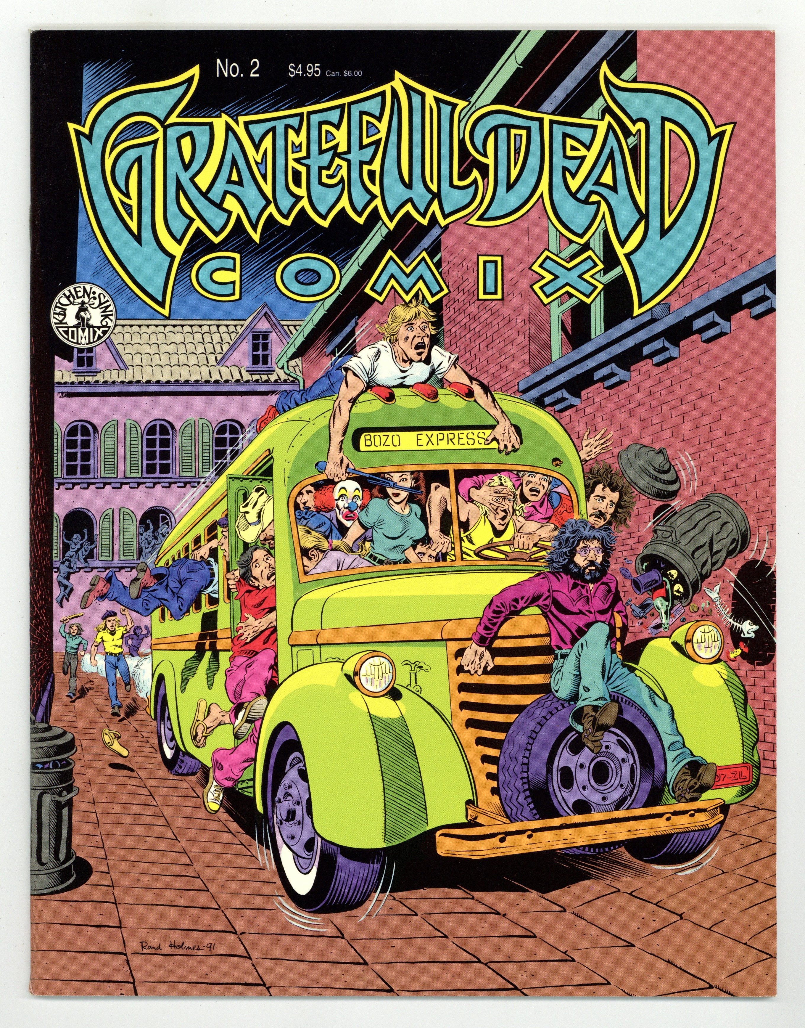 Published 1991 by Kitchen Sink.$19.00A true tale of the Dead on tour in Europe by Rand Holmes of Harold Hedd. A rare Holmes story in color; most of his underground work was black and white. Comics adaptations of Grateful Dead songs: Friend of the Devil by Frank Gresham, Cumberland Blues by Tim Truman, Terrapin Station continued by Dan Steffan. Cover by Holmes. Full color; 36 pages. Cover price $4.95.