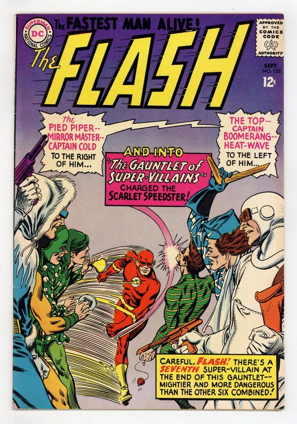 Tags: Flash$21.50Cover pencils by Carmine Infantino, inks by Murphy Anderson. Gauntlet of Super-Villains, script by John Broome, pencils by Carmine Infantino, inks by Joe Giella; Gorilla Grodd uses his powers to switch bodies with a gorilla in the Central City zoo and from there he uses Flash's greatest foes to battle Flash until he can take control of Barry Allen's mind. G.I. Joe club ad. Little Pete half-page strip by Henry Boltinoff. Palisades Amusement Park ad with Superman. 80 pg. Giant Lois Lane ad. Showcase Presents Enemy Ace ad. Letter from noted letter hack Guy H. Lillian III. Whats the Difference Between Exercise, Drill, Practice filler half-page. 36 Pages, Full Color. Cover price $0.12.