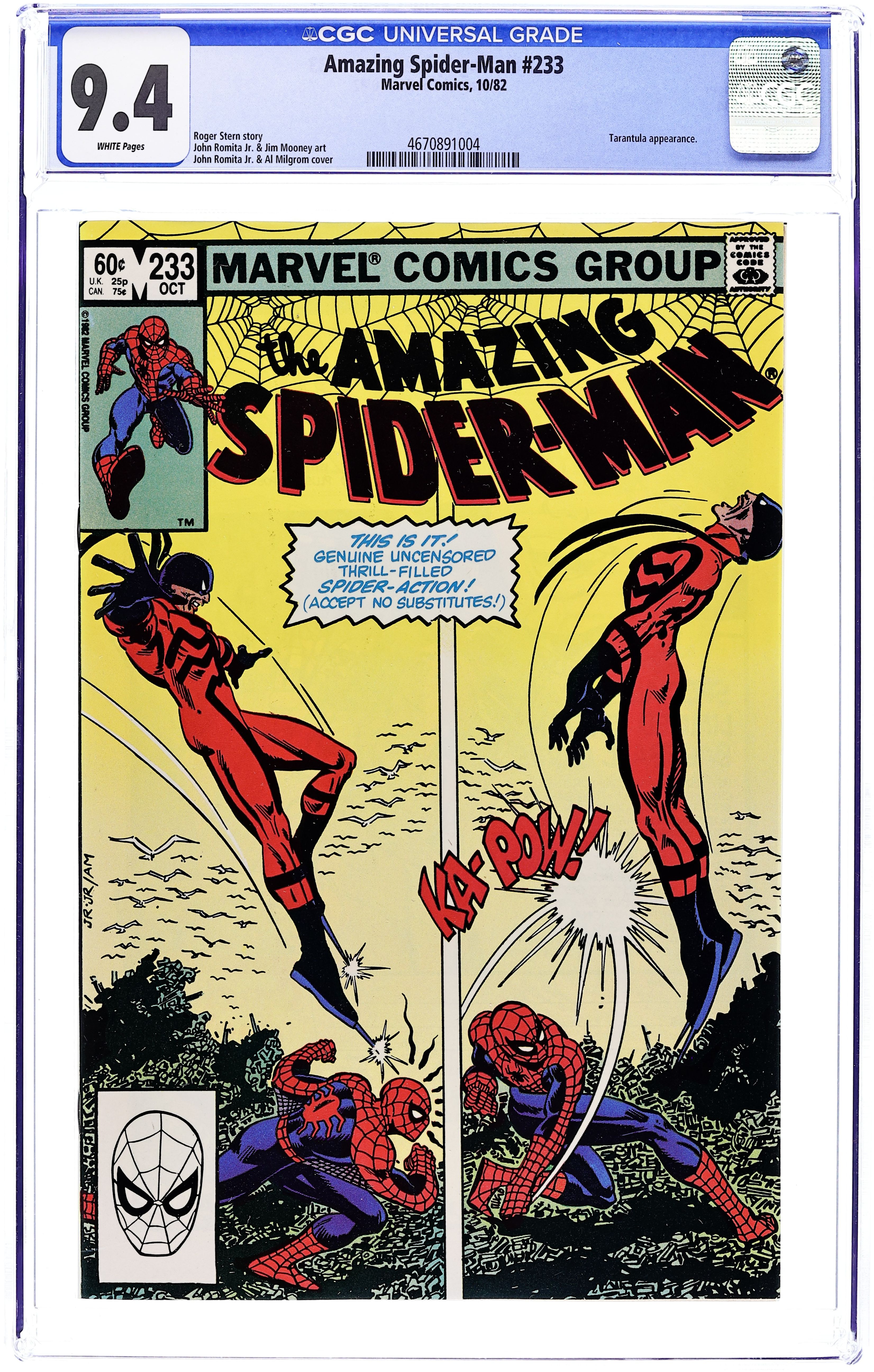 Direct Edition. "Where the @¢%# is Nose Norton?" Part 1 of 4. Script by Roger Stern. Art by John Romita Jr. (breakdowns) and Jim Mooney (finishes). Cover by John Romita Jr. and Al Milgrom. J. Jonah Jameson puts out an A.P.B. on Nose Norton! The underworld informant that was supposed to give the Daily Bugle key info for its exposé on the Brand Corporation! But Jolly Jonah isn't the only one that wants the Nose! So do Peter Parker, Ben Urich, and the Tarantula! On the Staten Island waterfront, all concerned parties come together! And Spider-Man and the Tarantula tangle again...for the Nose! Cameo appearances by Joe Robertson and Ned Leeds. (Notes: The Tarantula previously appeared in Spectacular Spider-Man 3. This story was reprinted in Spider-Man Magazine 5.) 36 pgs. Cover price $0.60.