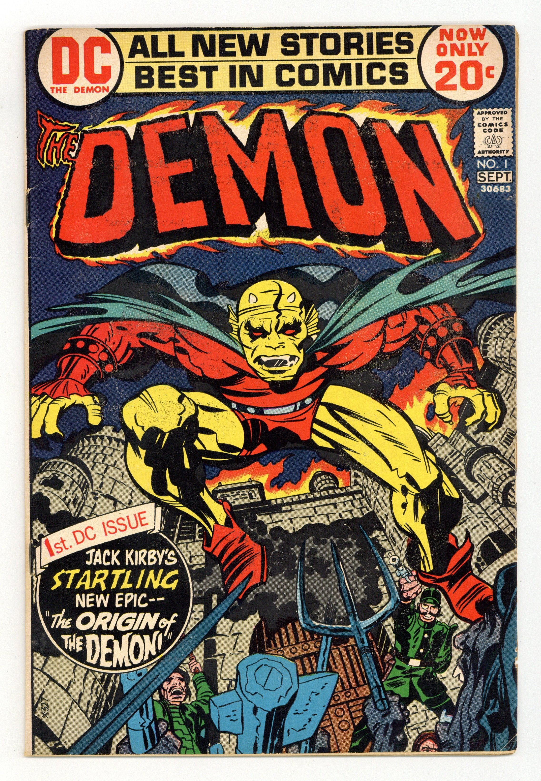 Witness the fall of Camelot, and the rise of the Demon. Features the origin of Etrigan the Demon and the villainy of Morgaine Le Fey. "Unleash the One who Waits!" Story and art by Jack Kirby. Note: First appearance of Etrigan, the Demon. Cover price $0.20.