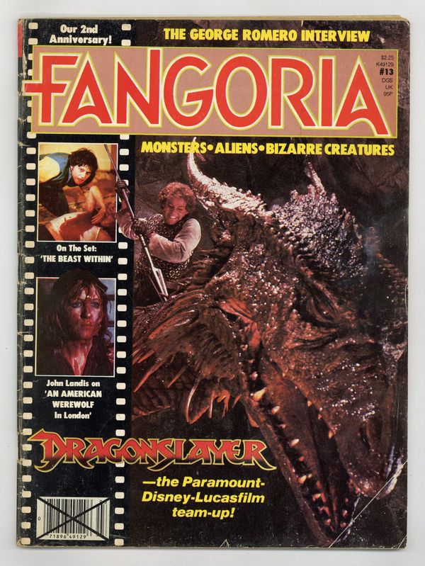 Published Jun 1981 by O'Quinn Studios.$14.00This issue includes the following: features on Corman's Mind Warp and Michael Wadleigh's The Wolfen; John Landis on An American Werewolf in London; interviews with Charles Grant and Ramsey Campbell; part one of George Romero interview; "Horror in the Comics" by Ron Goulart; and more. Cover features scene froom Dragonslayer. Cover price $2.25.