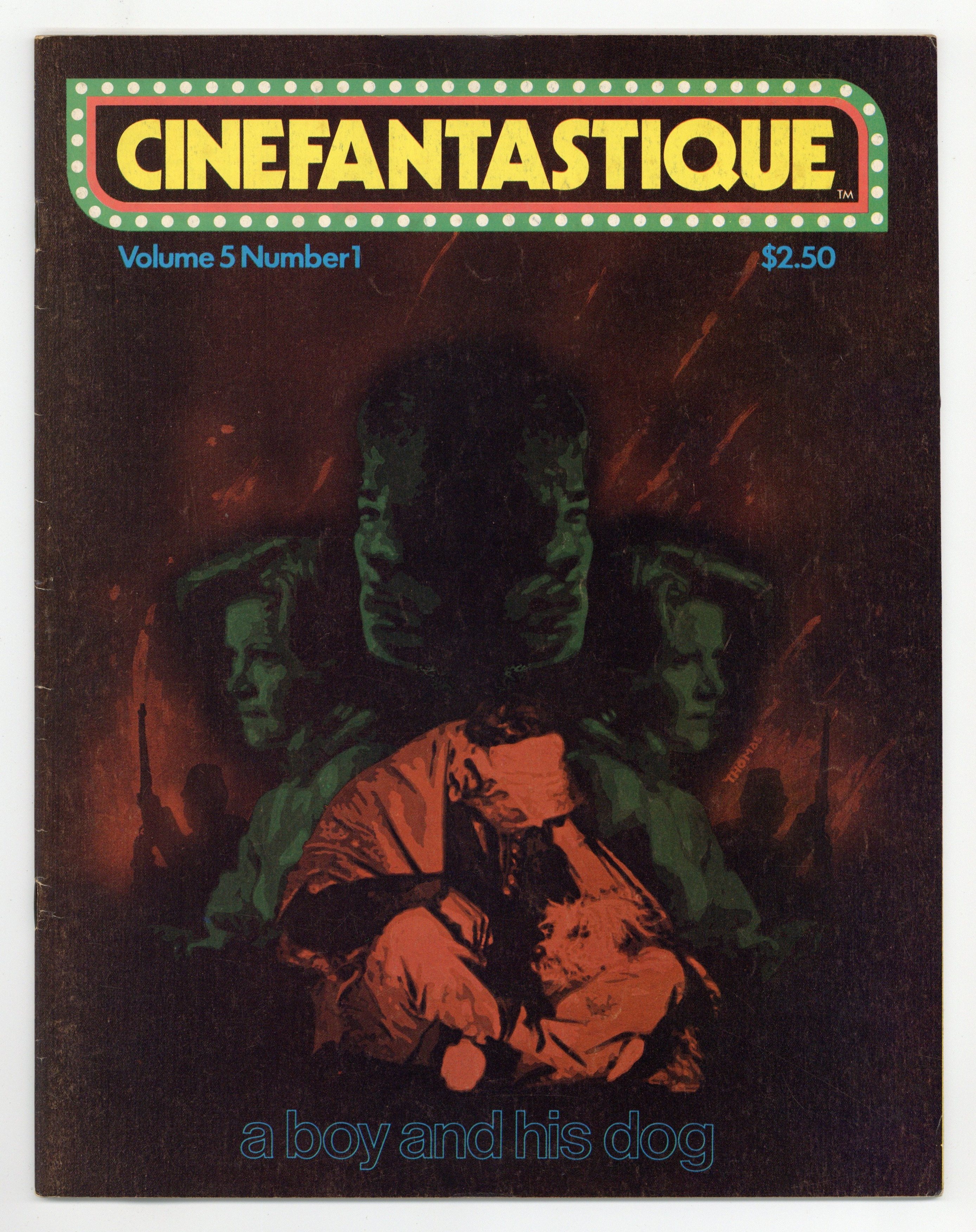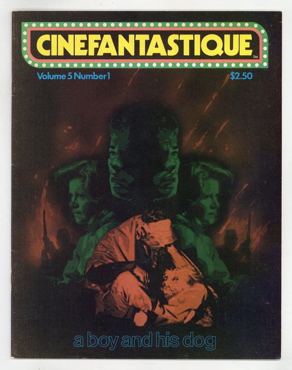 Vol 5, No. 1, #17. A Boy and his Dog cover art by Jim Thomas. A Boy and His Dog back cover photo. L.Q. Jones and Harlan Ellison discuss the making of A Boy and His Dog. Feature on Black Moon. An Open Letter to Dino De Lorentiss. Reviews: The Reincarnation of Peter Proud, Demons of the Mind, Bugs Bunny Superstar, The Bed Sitting Room, and more. Contributions from Fred Olen Ray and Bill Warren. 48 pgs. Spring, 1976. Cover price: $2.50. Cover price $2.50.