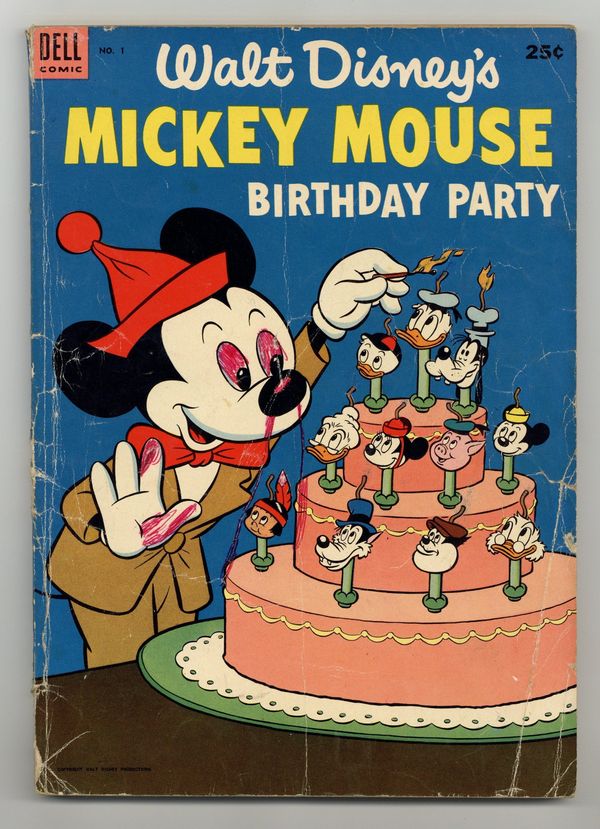 Reprints entire 48 pages of Gottfredson's "Mickey Mouse in Love Trouble" from Walt Disneys Comics and Stories 36-39. Quality equal to original. Also reprints one story each from Four Color 27,29, and 181 plus 6 panels of highlights in the career of Mickey Mouse. 100 Pages. Cover price $0.25.
