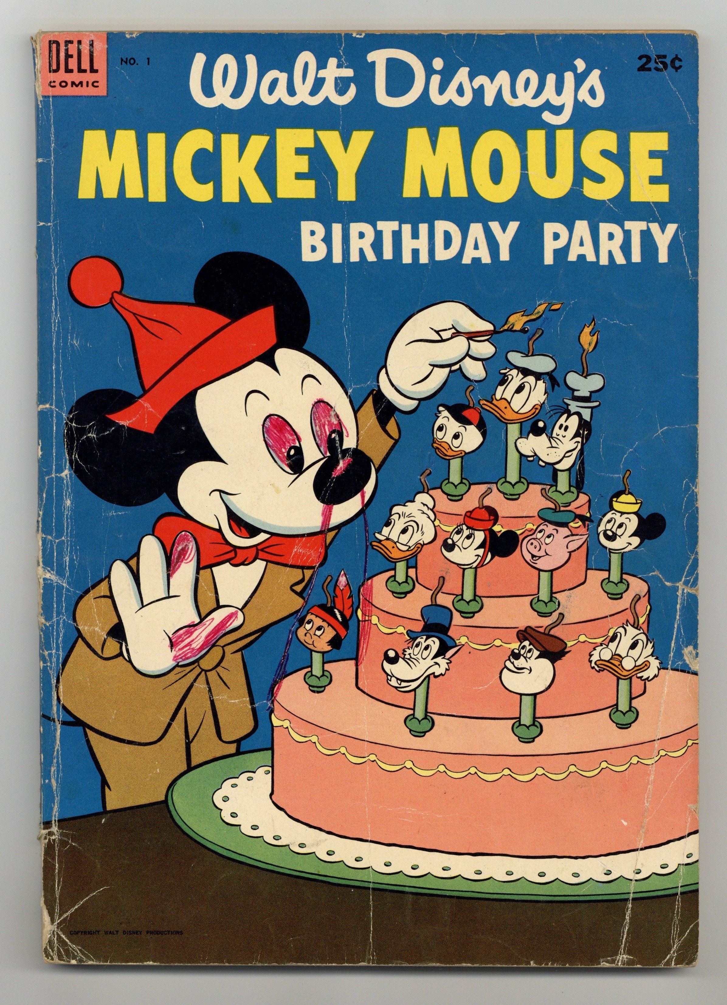 Tags: Dell Giant, Disney Ducks & Mice$35.00Reprints entire 48 pages of Gottfredson's "Mickey Mouse in Love Trouble" from Walt Disneys Comics and Stories 36-39. Quality equal to original. Also reprints one story each from Four Color 27,29, and 181 plus 6 panels of highlights in the career of Mickey Mouse. 100 Pages. Cover price $0.25.