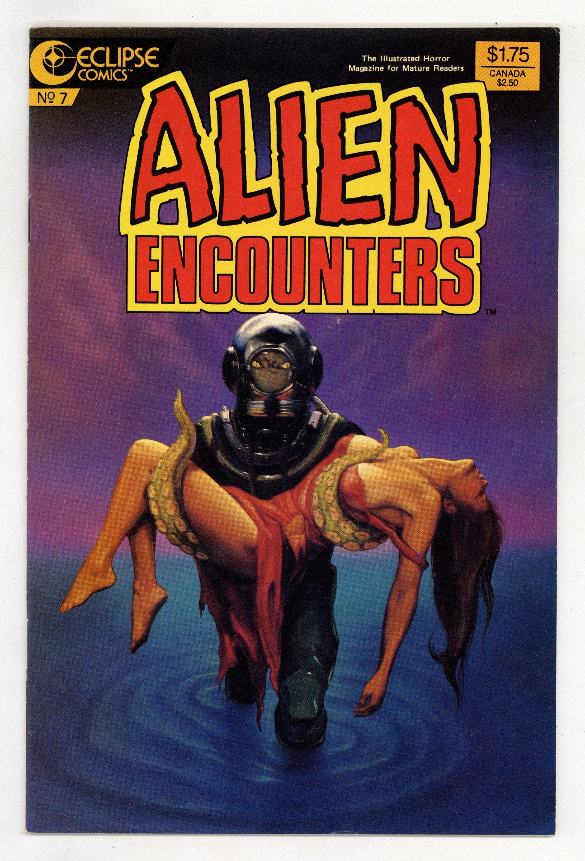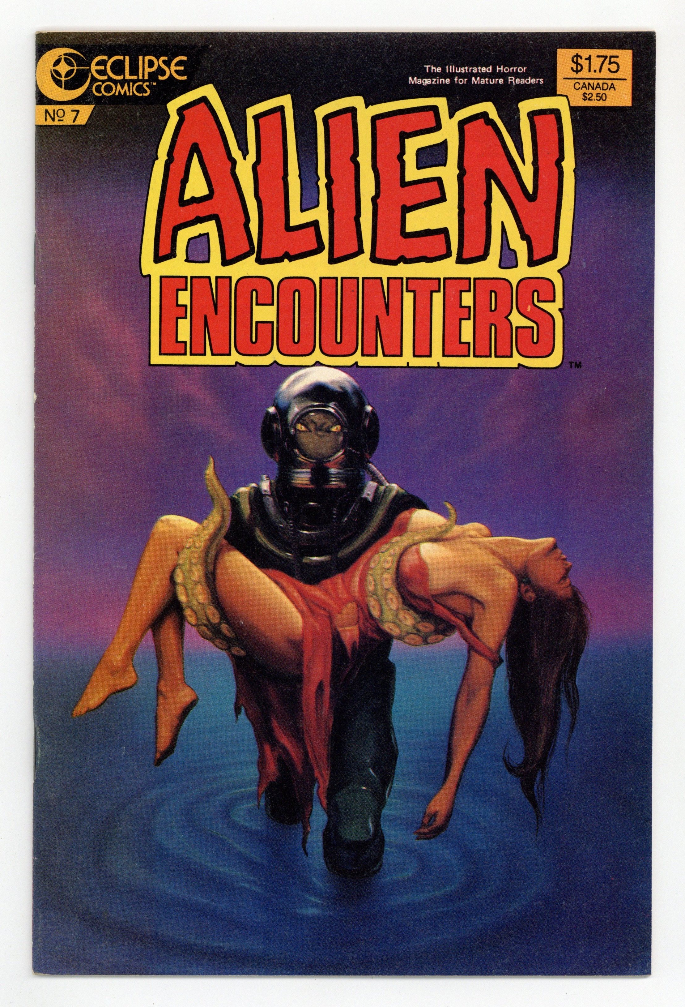 The illustrated horror magazine for mature readers. War is unforgiving in "Under Tartuka." Script by Bruce Jones, art by Bo Hampton. The price of fame in "So You Want To Be in Pictures?" Story by Douglas Wheeler, art by Richard Howell. Objects take flight in "It Happened This Morning." Story & art by Rick Geary. The truth is just as strange as fiction in "Picture Me and You." Story by Bruce Jones, art by Chuck Beckum. Cover by Corey Wolfe. Cover price $1.75.