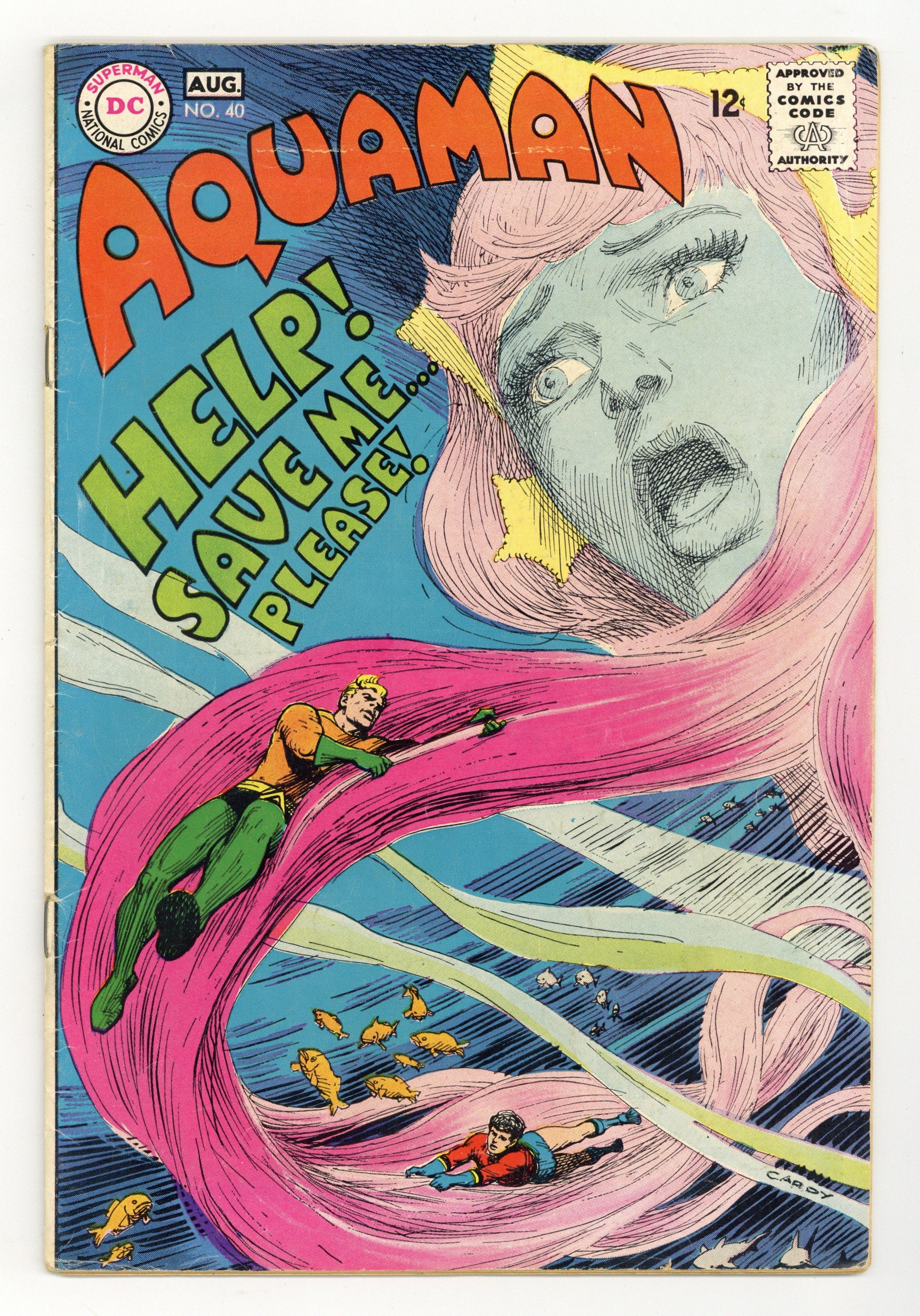 Cover art by Nick Cardy. Sorcerers of the Sea starring Aquaman, Aqualad, Mera, Aquagirl, Aquababy, Vulko, and The Sea Sorcerers, script by Steve Skeates, art by Jim Aparo (1st for DC); Mera kidnapped, multi-issue quest for Mera begins; story continues in Aquaman #41. Cap's Hobby Hints activity half-page by Henry Boltinoff. 36 pgs. $0.12. Cover price $0.12.