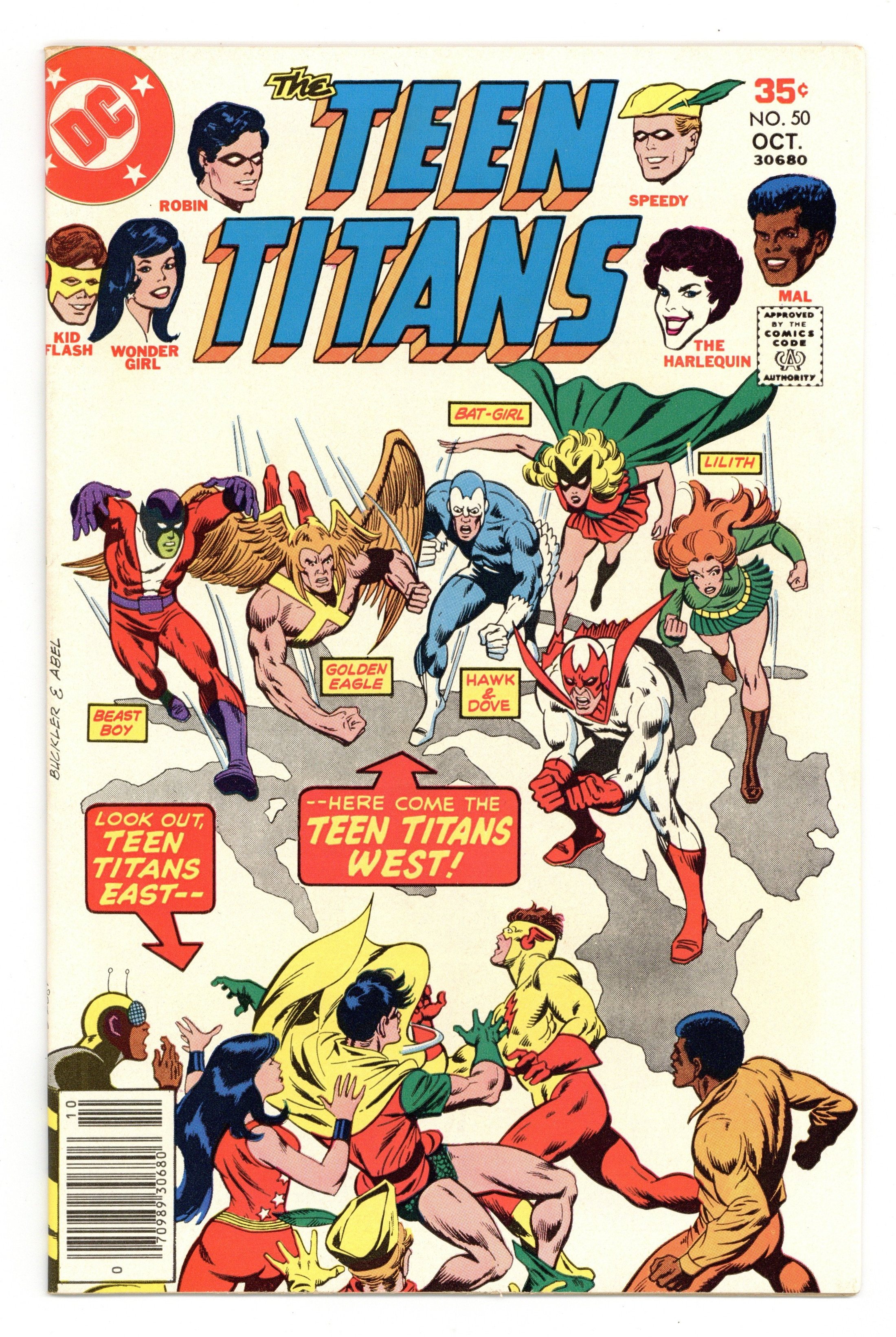 1st revival original Bat-Girl. Written by Bob Rozakis. Art by Don Heck and Joe Giella. Cover by Rich Buckler and Jack Abel. On the East Coast the Titans stop a runaway train and run into Captain Calamity while on the west coast a floating aircraft carrier brings several costumed heroes running, and they meet after saving the carrier. Hostess ad with Wonder Woman, pencils by Curt Swan, inks by Vince Colletta. Ask the Answer Man column by Bob Rozakis. 36 Pages, Full Color. Cover price $0.35.