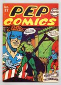 The 16th issue of the Flashback reprint series presents PEP COMICS # 17 originally published in 1941 by MLJ Magazines. First appearance and origin of the Hangman. Cover art by Irv Novick. Shield G-Man Club ad. "The Case of the Kid Lookout," script by Harry Shorten, art by Irv Novick; The Shield (Joe Higgins) vs. Blinker and his gang. "The Origin of the Hangman," art by George Storm; John "The Comet" Dickering sees his brother Bob being kidnapped by a couple of Big Boy Malone's men, and flies to his aid, but is shot and killed in the process; Bob swears revenge and becomes The Hangman, and when Chugger is found not guilty because John Dickering isn't alive to testify against him, The Hangman hustles Chugger out of the courtroom, and subjects him to his own methods to extract a confession. "Prisoners of the Cyclops," script by Harry Shorten, art by Lin Streeter; Danny In Wonderland encounters a giant cyclops. "Trapped by the Fuzzy Wuzzies," art by Charles Biro; Sergeant Boyle and Corporal Collins vs. the Fuzzy Wuzzies. "The Sailboat Smugglers"; The Fireball (Ted Tyler) vs. a gang of smugglers. Pep Comics ad. "Man without a Face," script by Harry Shorten, art by George Storm; On his wedding day, Kayo's face is badly burned; Ashamed of his scarred face, he flees and becomes a hobo; Kayo fights a local fighter in a small town. "The Parachute Killer," script by Joe Blair, art by Sam Cooper; Bentley of Scotland Yard vs. Roger Kimberley. 68-pages, full color cardstock covers, 7-3/4-in. x 10-3/8-in. black-and-white interior on white paper stock, saddle-stitched binding. Cover price $3.00.