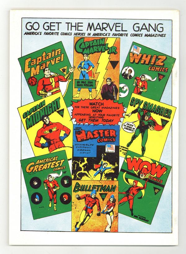 The 17th issue of the Flashback reprint series presents CAPTAIN MARVEL, JR. #1 originally published in 1943 by Fawcett Publications. Cover art by Mac Raboy. "The Origin of Captain Marvel, Jr. Retold," art by Al Carreno; While they are fishing, Freddy's grandfather rescues the nefarious Captain Nazi, who promptly kills the grandfather and severely injures Freddy Freeman; Captain Marvel rescues the young boy and takes him to see Shazam, who gives some of the Mighty Mortal's powers to the boy, who then becomes Captain Marvel Junior. "Wings Over Dazaggar!!", art by Al Carreno; Captain Marvel Jr. goes to Dazaggar in Africa to fight Captain Nazi and prevent him from moving plans ahead there to use gigantic "winged castles" to invade the Western Hemisphere. "The Shadow That Walked!", art by Al Carreno; Captain Marvel Jr. involves himself in a case where a criminal, known as The Walking Shadow, is causing a crime wave, threatening to become the King of Crime, a title he may well own if he can locate the Dumont Treasure. "The Bomb Proof Shirt!" starring Willie Wynn. "The Case of the Crippled Kidnappers," art by Al Carreno; Captain Marvel Jr. gets involved in a fake accident racket, in which young cripples were drugged, then used in certain fake accidents that would net the gang millions in blackmail payments. "The Cracked Safecracker," art by Al Carreno; Captain Marvel Jr. saves an older couple from being run over, and discovers that they are to be forced into living in a poorhouse unless their son can be found to help them out; But when he sees a picture of the son, Captain Marvel Jr. recognizes him as a noted safecracker. 68-pages, full color cardstock covers, 7-3/4-in. x 10-3/8-in. black-and-white interior on white paper stock, saddle-stitched binding. Cover price $3.00.