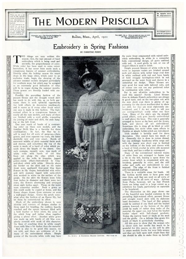 Vol. 77, No. 4. April 1911. Women's magazine devoted to fashions and sewing. 11.25" x 16". 94 pages. PC/PB&W. Cover price $0.15.