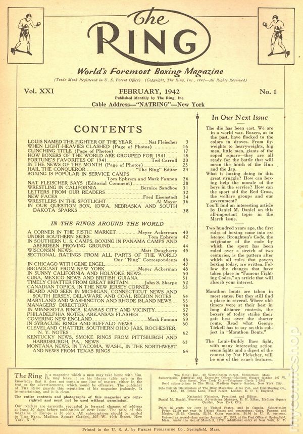 Ring (1922-present Rumford Press) Magazine Vol. 21 #1Published Feb 1942 by Rumford Press.$9.00
